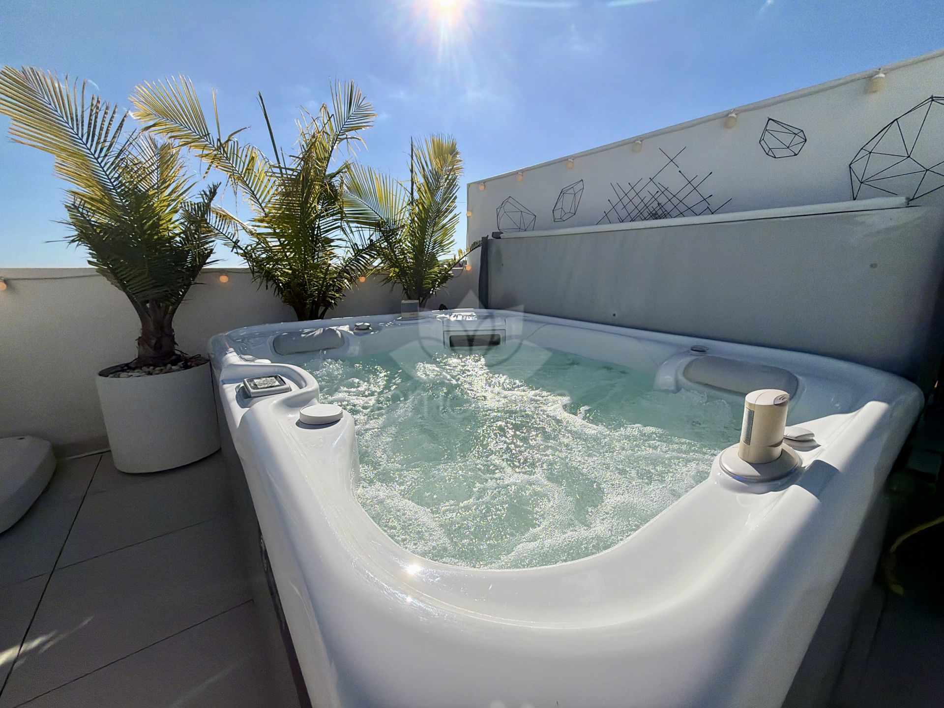 Inside, the property impresses with bright, modern living spaces and an open-plan layout. There are two bedrooms and two bathrooms, including a comfortable master suite with its bathroom en-suite. The guest bedroom enjoys its own private terrace facing the Mijas mountains.