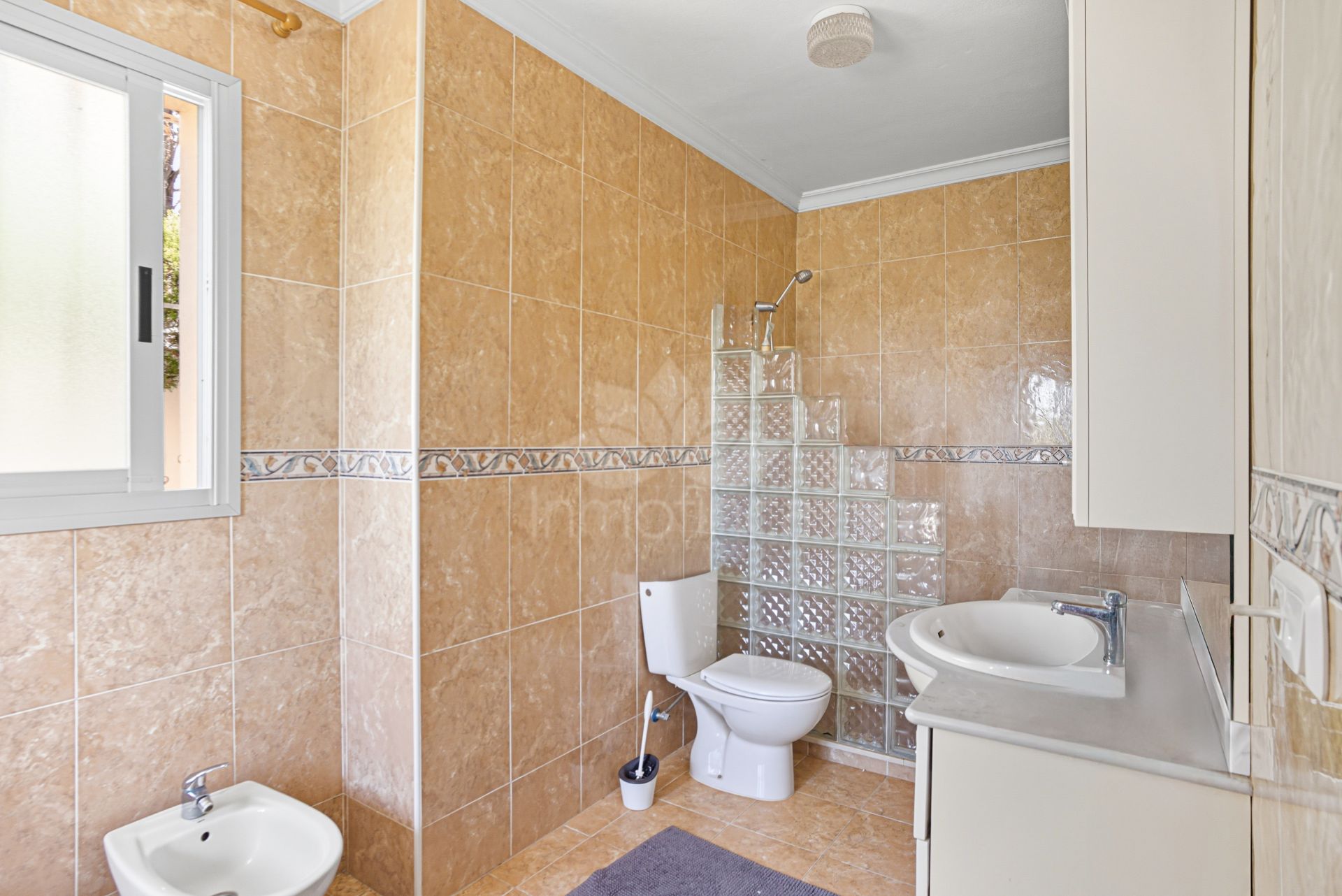 Located in the quiet and sought-after residential area of Parque Elviria, this charming southwest-facing villa sits on a generous 1,084m² plot and offers an excellent renovation opportunity. Ideal for those looking to create their dream family home or investors seeking a property with great potential. The single-level home features a fully renovated detached guest apartment, providing privacy and additional comfort. The current layout includes several well-proportioned bedrooms, a spacious living room, separate dining area, kitchen, and family bathrooms. Large windows throughout fill the interior with natural light and create a seamless connection to the surrounding gardens. Set in a safe and peaceful neighborhood, it is just a short drive from the beach, golf courses, international schools, and all local amenities. This is a unique chance to acquire a property with solid foundations, generous land, and the potential to become an exceptional home in a prime Costa del Sol location.