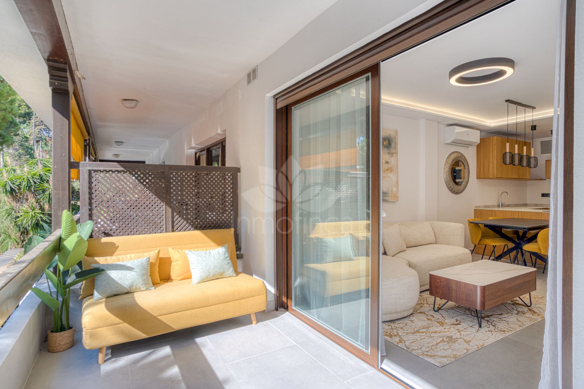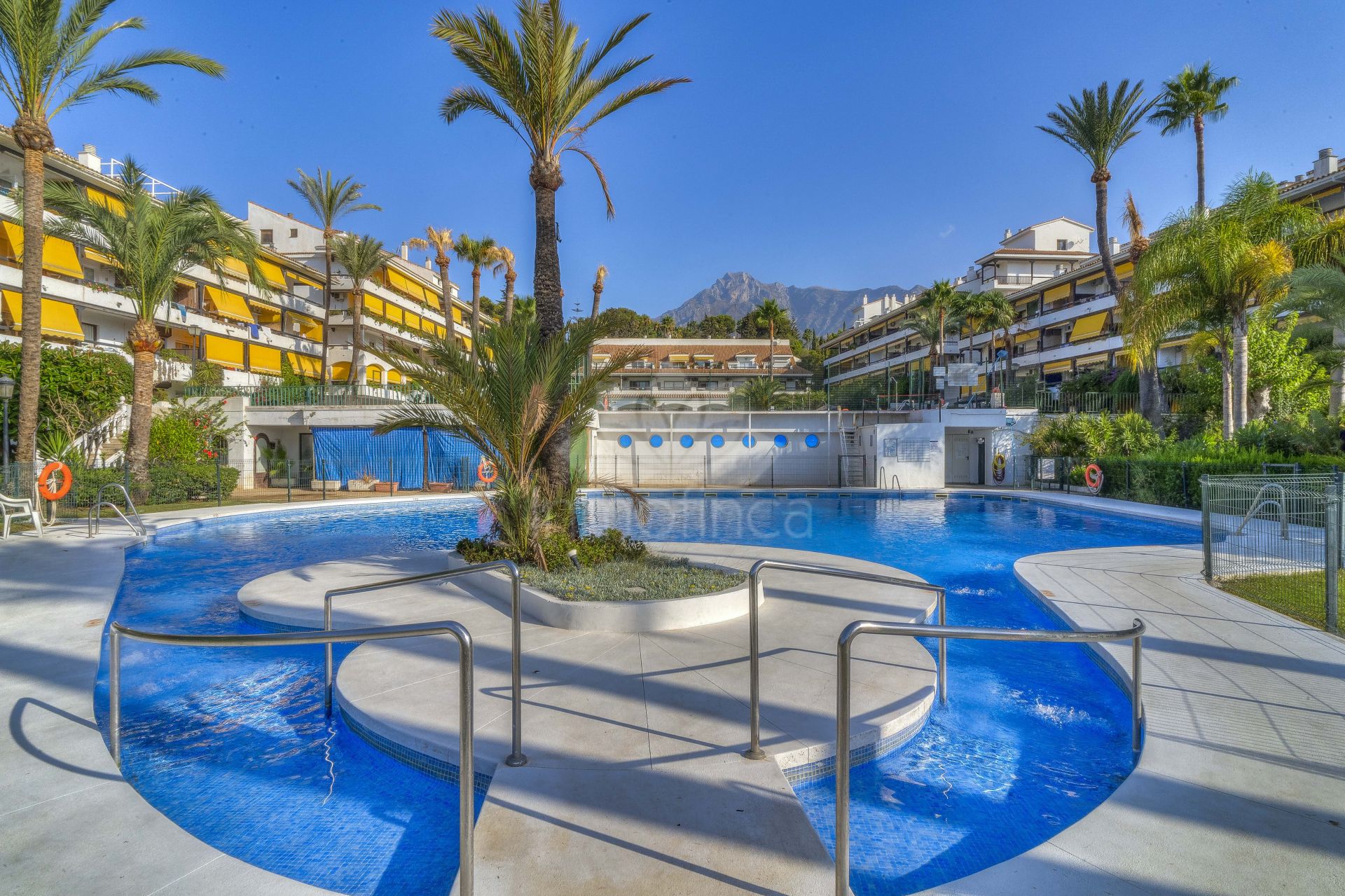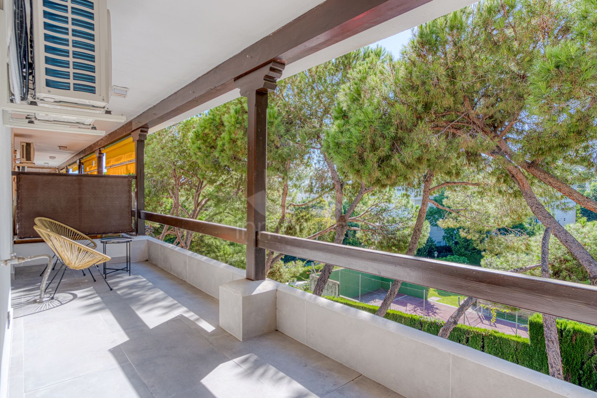 This exceptional three-bedroom apartment is situated in a highly sought-after location on Marbella’s prestigious Golden Mile, within the charming urbanization of La Carolina Park. The community offers extensive landscaped gardens, two swimming pools, and a tennis court, while also being within easy walking distance to the beach, renowned restaurants, and all essential amenities. Recently renovated to a high standard, the apartment is west-facing and features a spacious open-plan kitchen and living area with modern fittings and air conditioning, seamlessly connecting to a private terrace perfect for outdoor dining or enjoying the afternoon sun. The master bedroom boasts an en-suite bathroom, complemented by two additional well-sized bedrooms and a second bathroom. In addition, the property includes a parking space for one car in the communal garage, making it perfectly suited for comfortable year-round living in one of Marbella’s most desirable areas.
