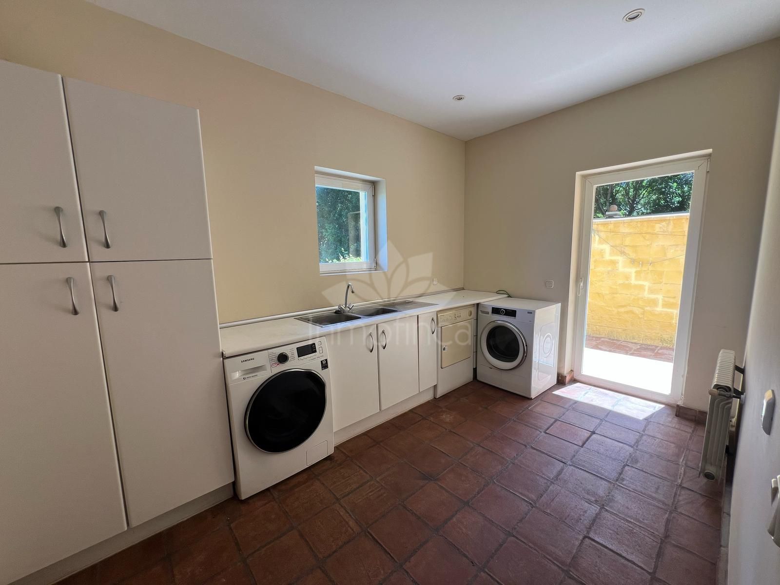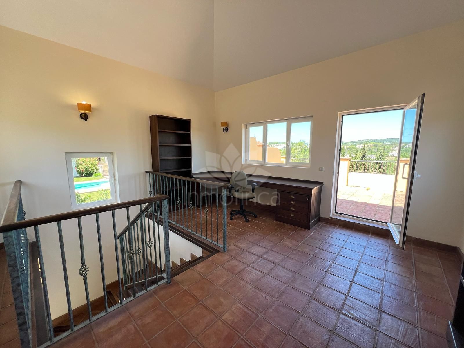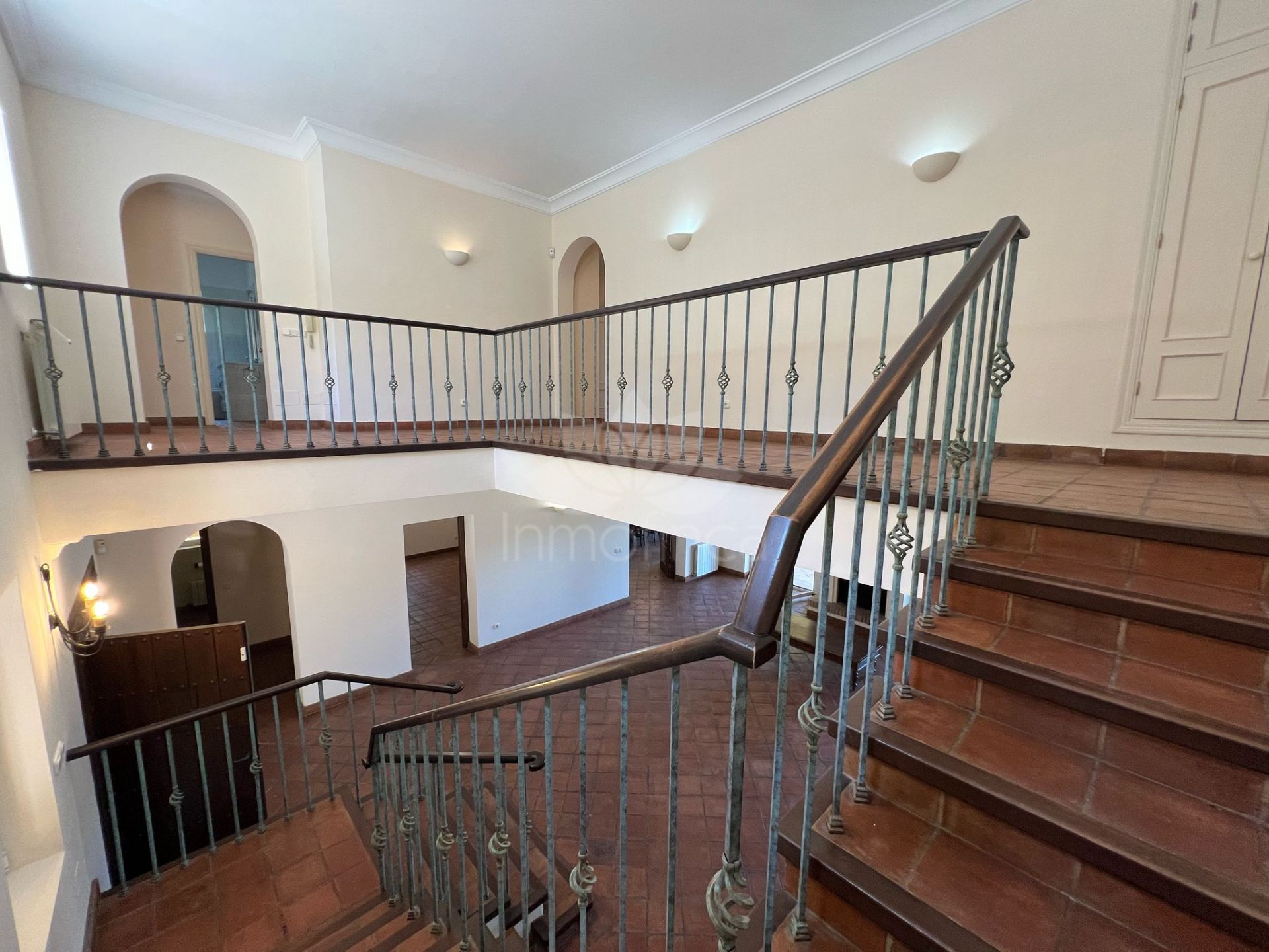 A sweeping staircase connects two private bedroom wings. The main suite features an en-suite bathroom, dressing room, Juliette balcony, and French doors leading to a terrace with panoramic views of the garden, pool, and hillside. A second office with its own terrace sits just above, offering incredible scenery. Additional bedrooms and bathrooms provide generous space for family and guests. The enormous basement with space for 6/8 cars also offers the possibility of conversion into a gym, home cinema or staff quarter.
