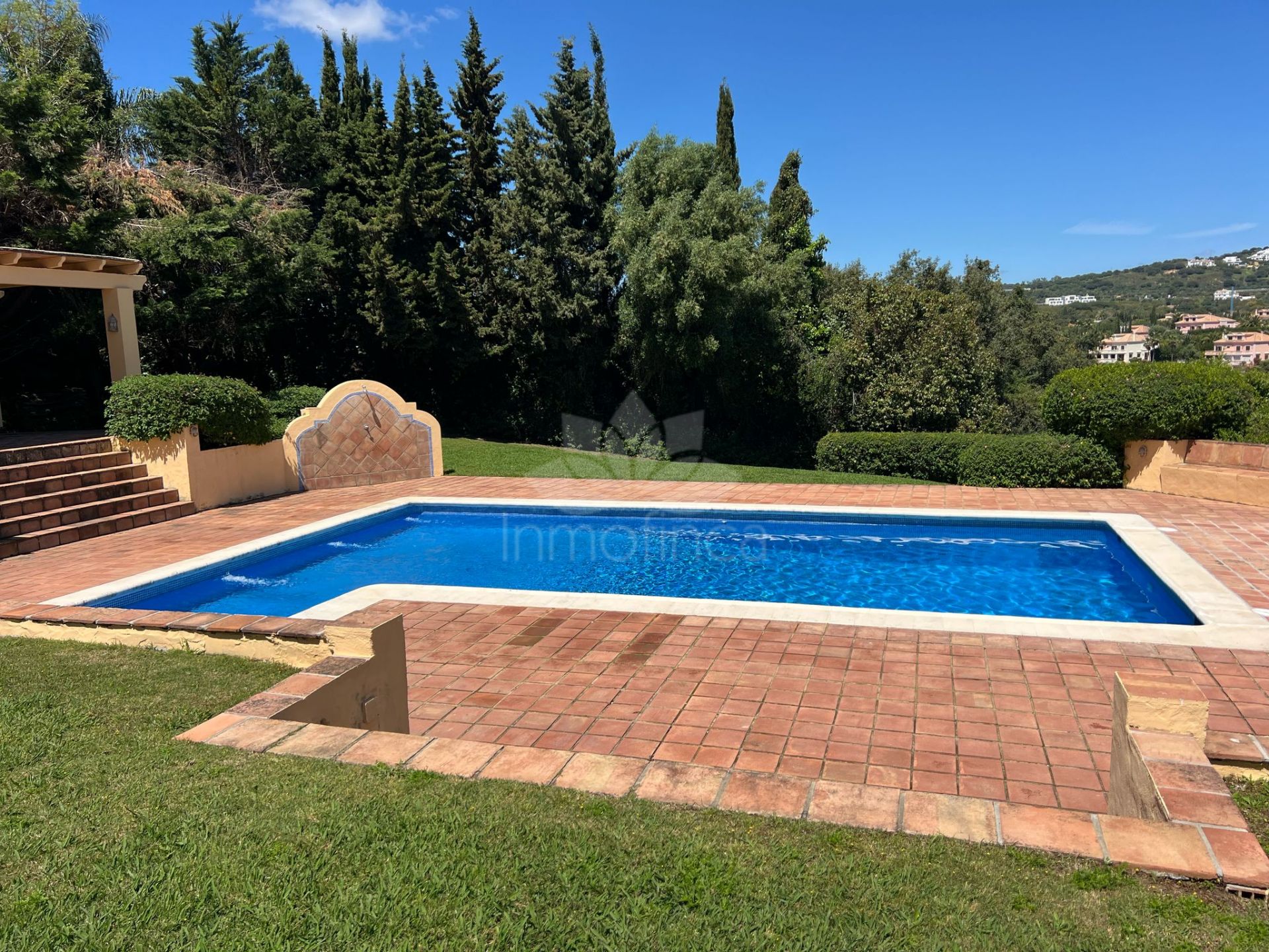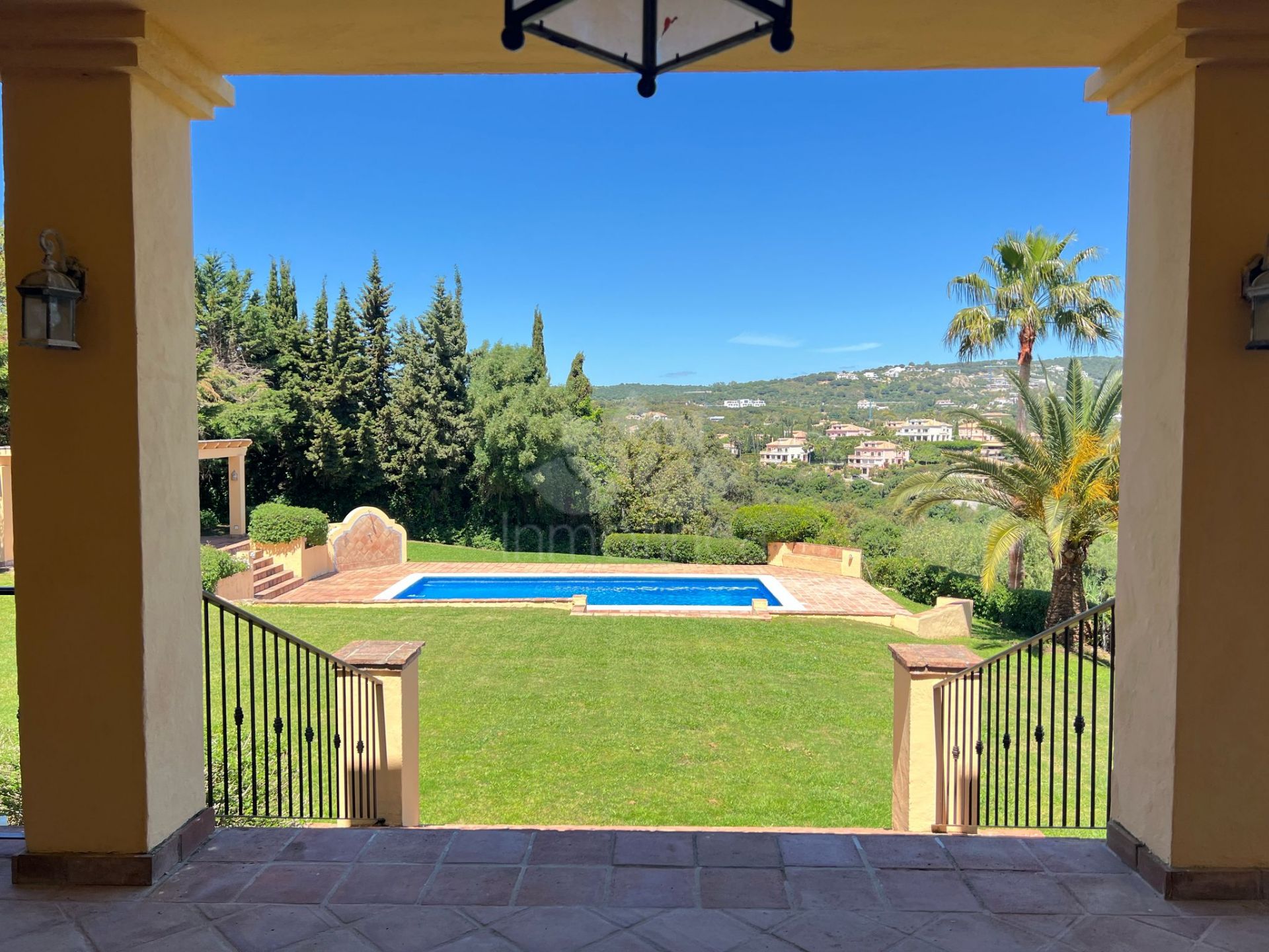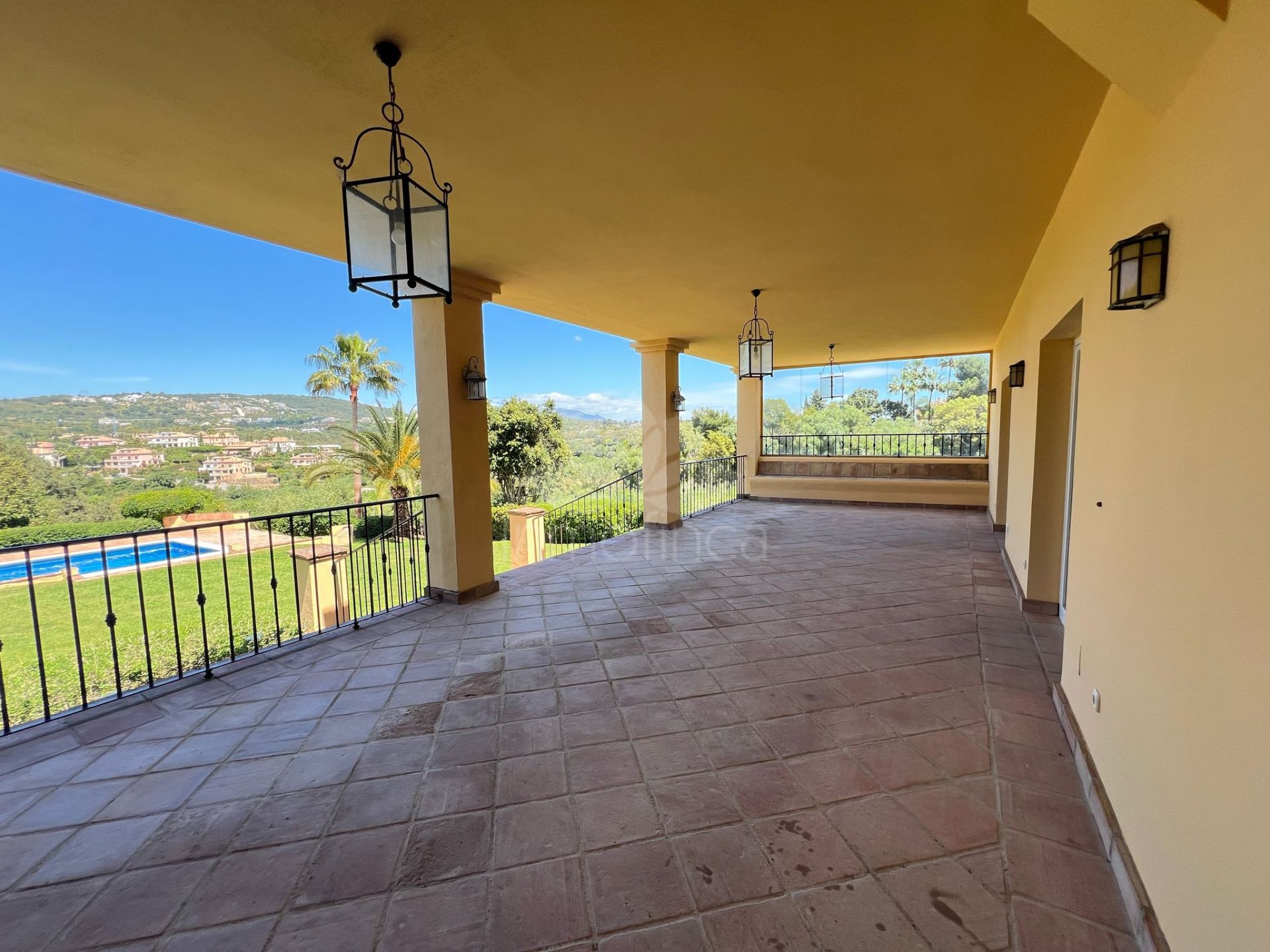 This stunning Andalusian-style villa offers exceptional outdoor living with a 205 m² terrace, lush garden, and sparkling pool—all also set against breathtaking views of the mountains and surrounding greenery.