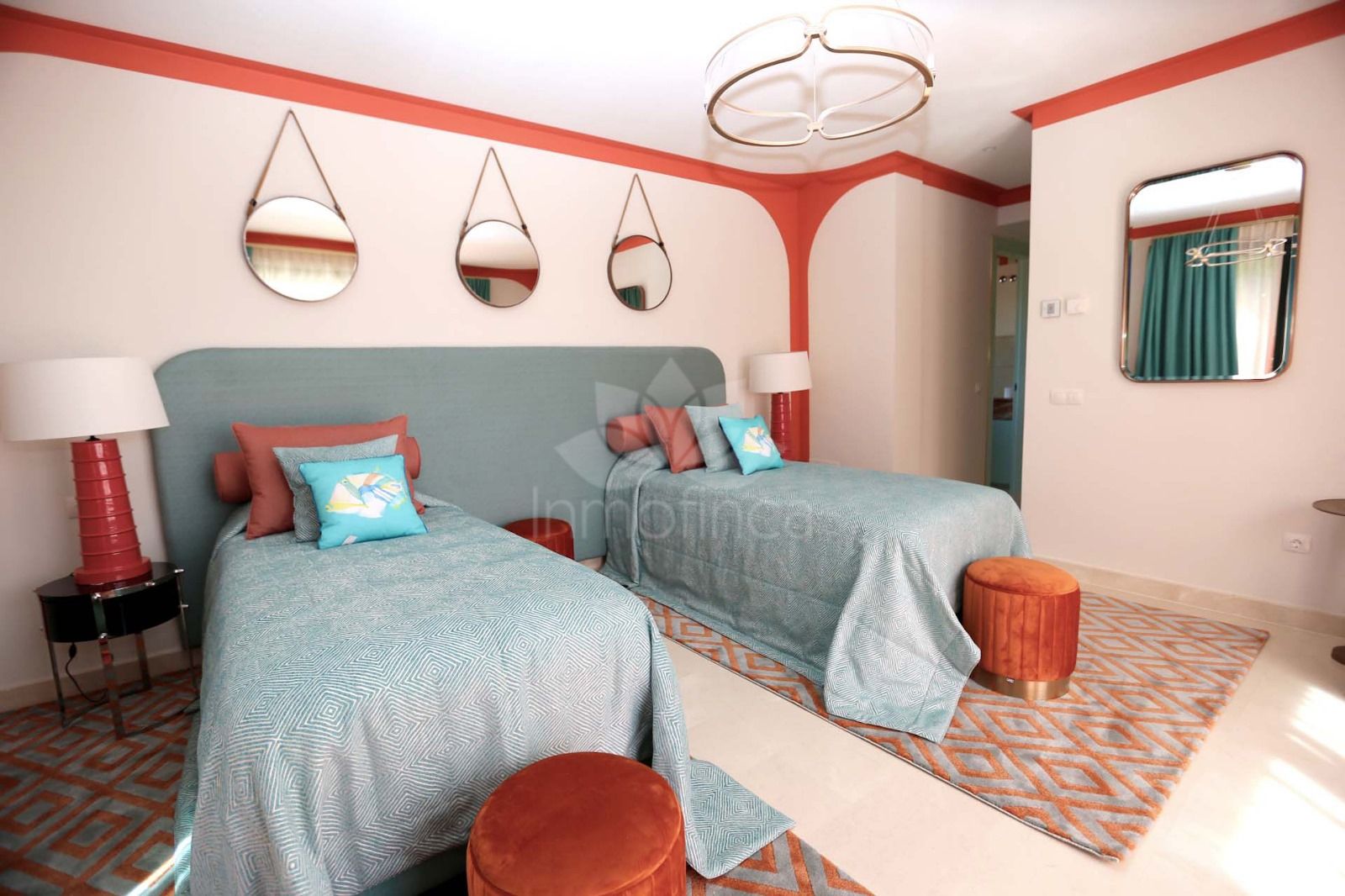 Residents will relish the array of high-end amenities, such as a private heated pool surrounded by meticulously maintained gardens, a jacuzzi, sauna, fully equipped gym, and an inviting games and cinema room. For outdoor enjoyment, there are both covered and private terraces offering breathtaking panoramic views, encompassing the sea and nearby mountains. Security is paramount, with surveillance cameras, an alarm system, security shutters, armored door, video entrance, and a secure private garage.