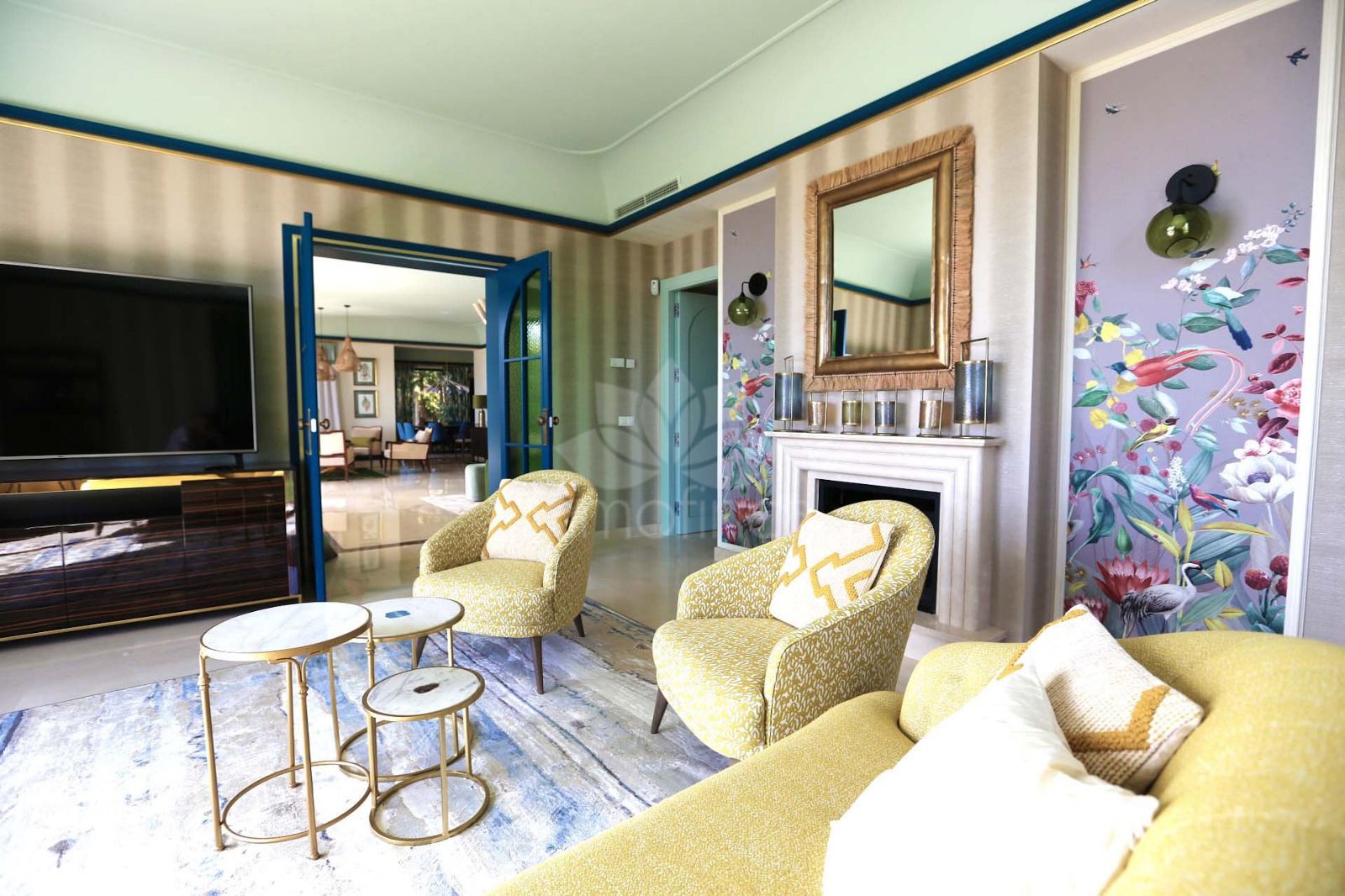 This outstanding luxury villa is situated in the prestigious enclave of Selwo, Estepona East, Estepona, Malaga. Set within a gated community and benefitting from 24-hour security service, this remarkable residence combines contemporary elegance with sophisticated functionality, offering unrivalled levels of comfort and convenience. Spanning an impressive built area of 931m² on a generous 2,004m² plot, the property boasts five spacious bedrooms, each with en-suite bathrooms, as well as two additional toilets for guests and visitors.