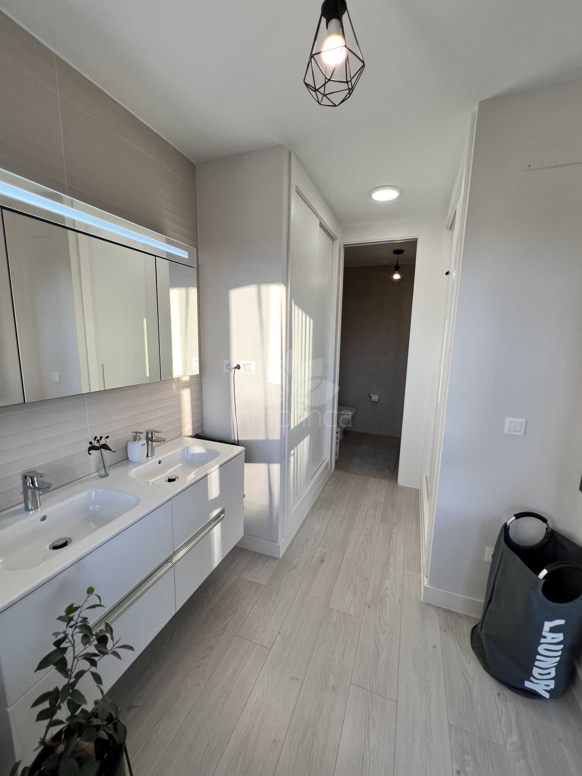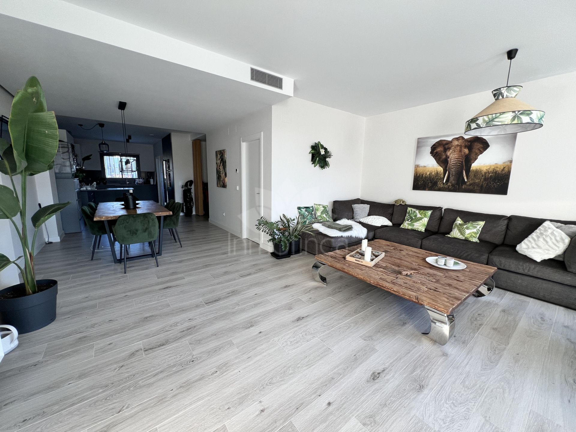 The townhouse, presented in excellent condition, features a spacious interior of 176m² and a total built area of 280m². The home includes three comfortable bedrooms, two modern bathrooms, and an additional guest toilet. The living spaces open onto a generous 100m² terrace, perfect for outdoor dining and enjoying the panoramic views. A private garden provides a green oasis, while the communal pool is ideal for cooling off on warm days. The property also benefits from air conditioning throughout, ensuring year-round comfort.