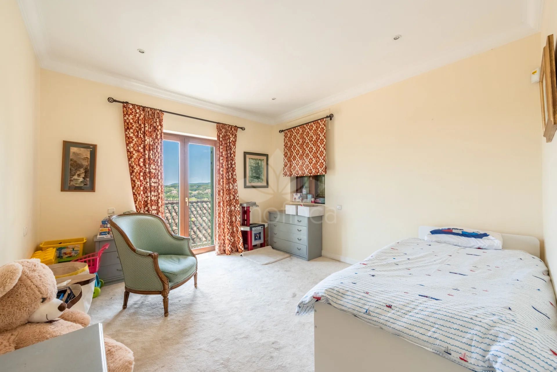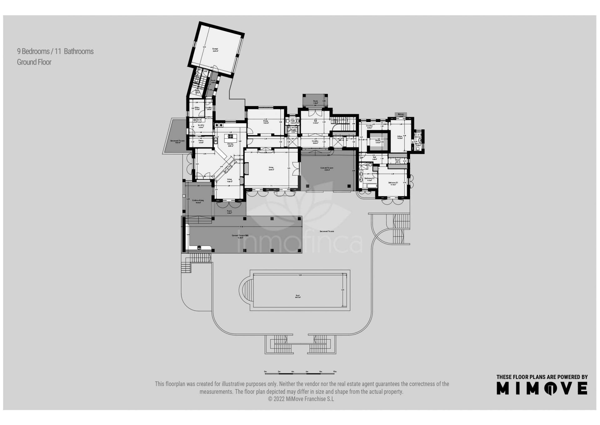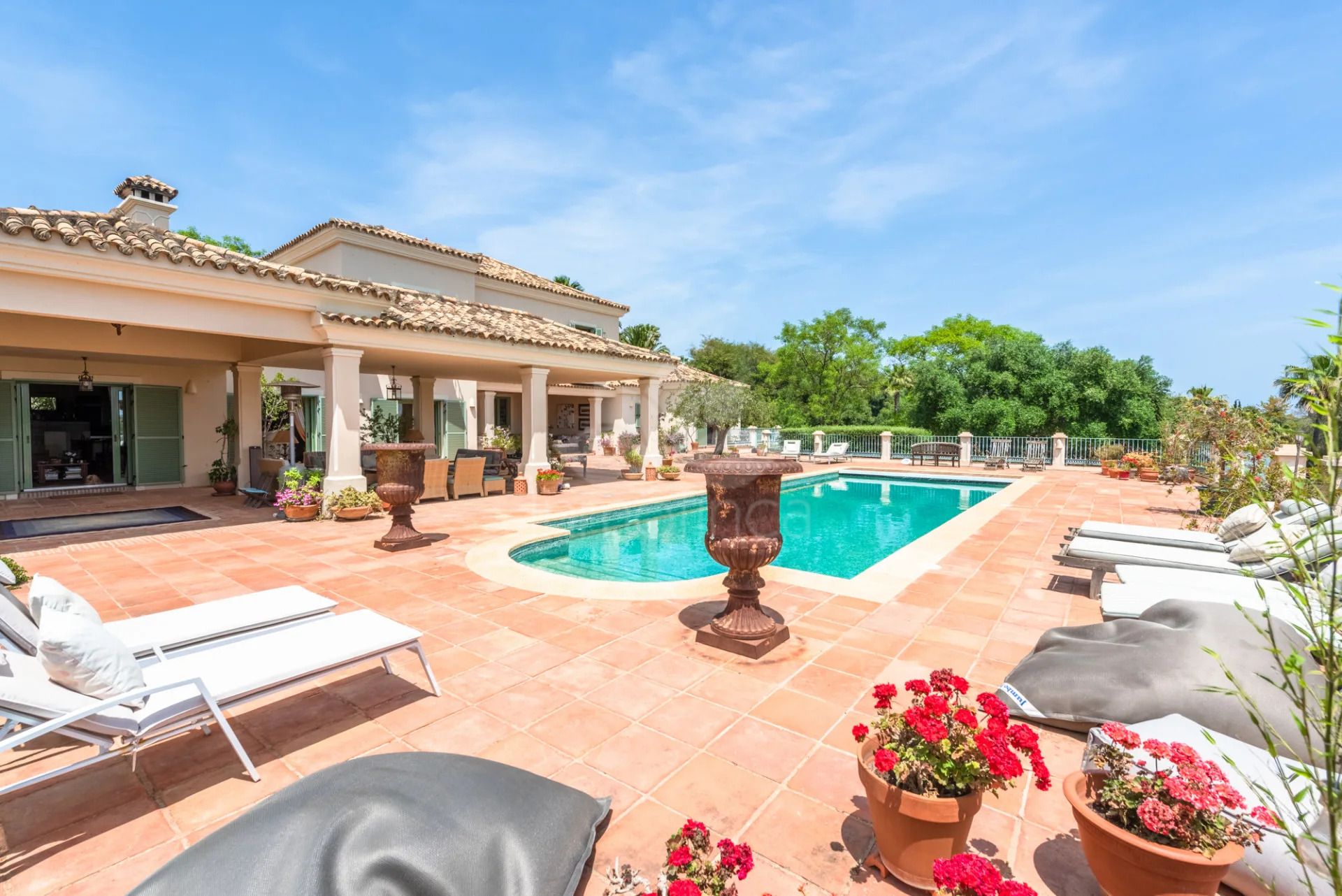 The villa offers nine bedrooms and eleven bathrooms, providing ample accommodation for residents and guests alike. The interior spans 720m² within a total built area of 1,084m², ensuring each room feels airy and bright. The property is equipped with air conditioning, underfloor heating throughout, and a fireplace, ensuring comfort in every season. There is a dedicated guest apartment, a guest room, and an office room for flexible living arrangements, while the basement, storage room, and laundry room add practical convenience. The villa’s unfurnished status presents a blank canvas for personalisation.