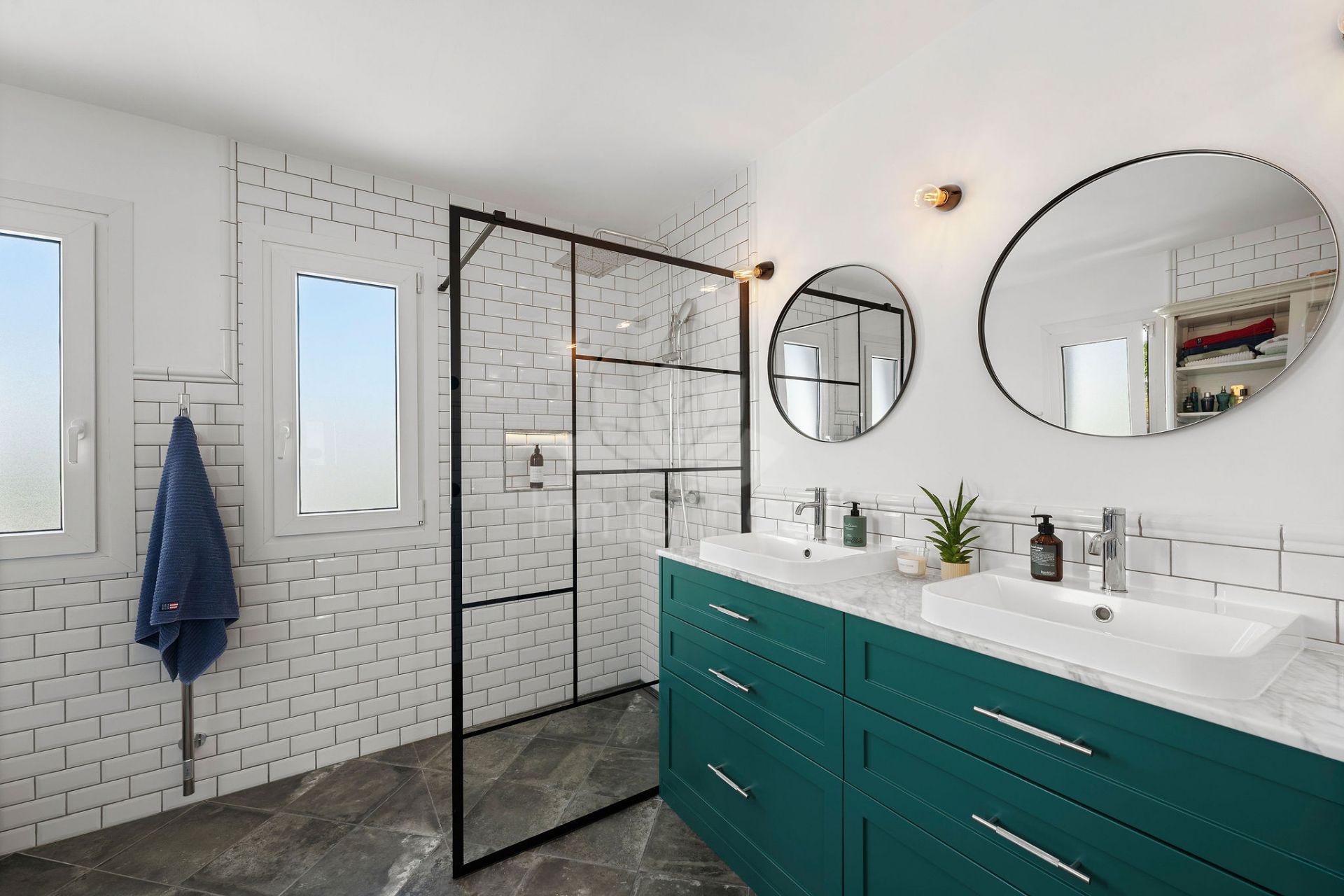 The villa features 4 spacious bedrooms and 3 bathrooms plus a guest toilet, all designed with refined aesthetics and high-quality finishes. The bathrooms include underfloor heating for year-round comfort. The kitchen, crafted in Sweden, blends sleek functionality with timeless design — ideal for everyday living and hosting guests. Light throughout the villa is controlled by a Plejd smart lighting system, allowing you to easily create the perfect ambiance for any occasion.