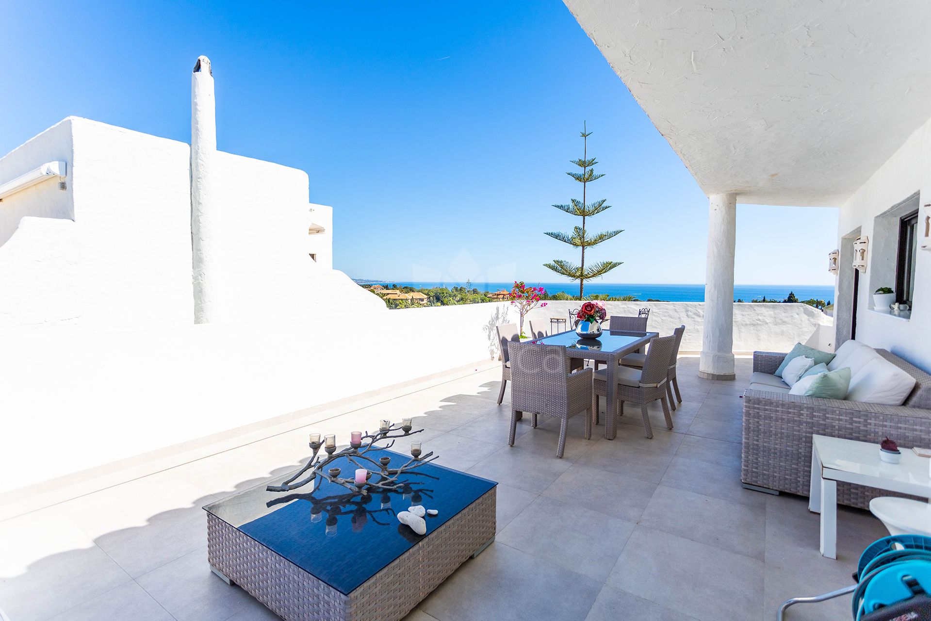 El apartamento cuenta con una gran terraza envolvente con vistas panorámicas a la montaña de La Concha y al mar Mediterráneo. Este espacio al aire libre es ideal para relajarse o celebrar reuniones mientras disfruta del impresionante entorno. Además, dispone de una exclusiva entrada privada con ascensor con llave de acceso directo a su puerta principal, completa con un recibidor exterior y almacenamiento . Para añadir aún más valor, ofrece el uso privado del solárium, asegurando total privacidad ya que ningún otro residente del edificio puede acceder.