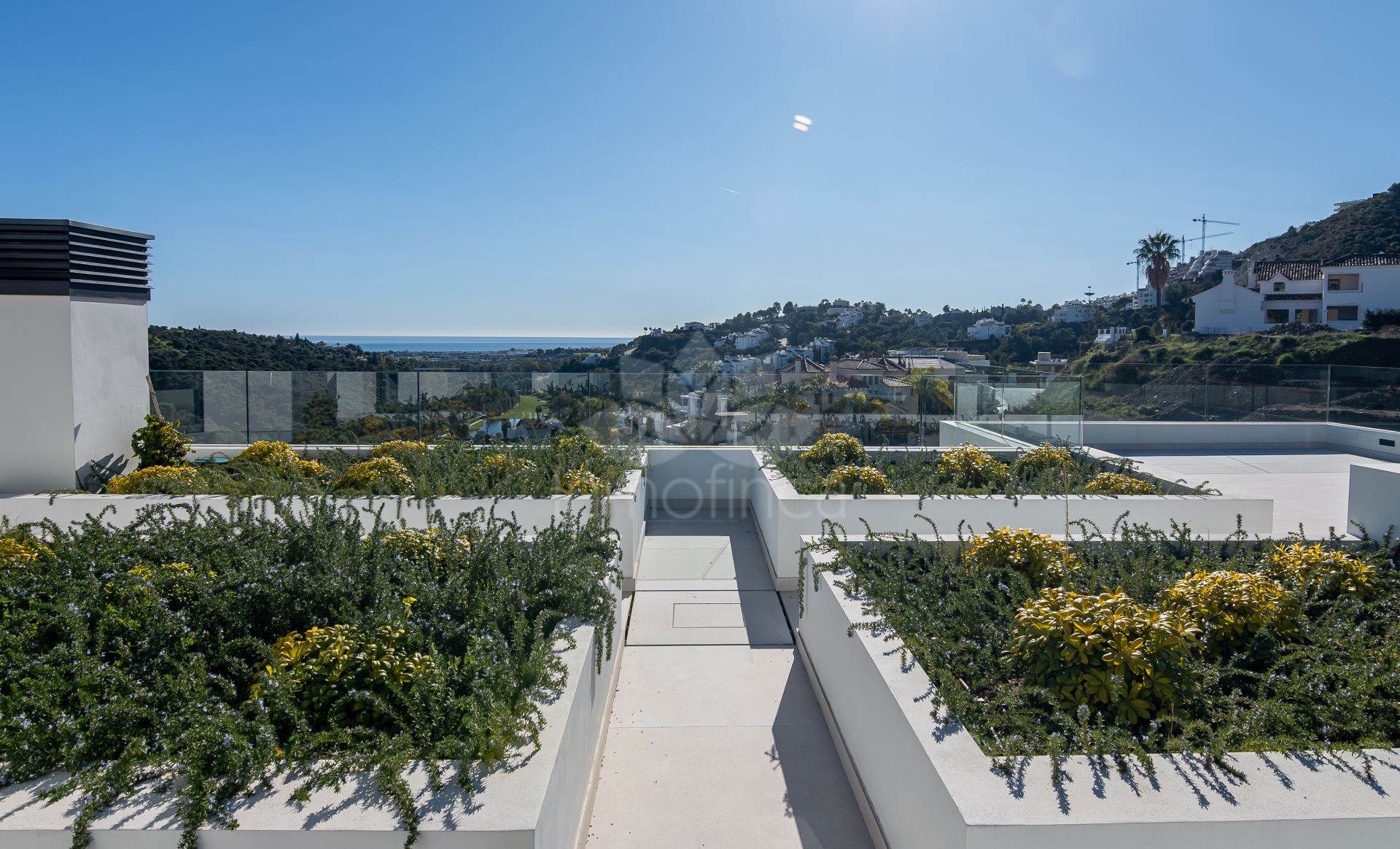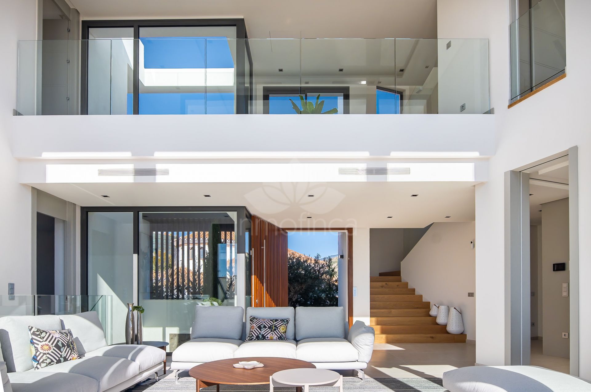 Los espacios exteriores de la villa incluyen dos jardines con magníficas vistas, la terraza principal y la zona de la piscina, además de un espacioso solárium de 158 m² con preinstalación para una cocina exterior y vistas de 360º al mar, al campo de golf y a las montañas. El solárium también cuenta con una zona ajardinada y hay preinstalación para instalar un ascensor desde el sótano. Con calefacción por suelo radiante por agua en toda la vivienda y grifería Hansgroe, esta propiedad ofrece comodidades modernas, vistas espectaculares y una ubicación muy solicitada, lo que la convierte en una oportunidad excepcional para aquellos que buscan vistas, privacidad, espacio y comodidad.