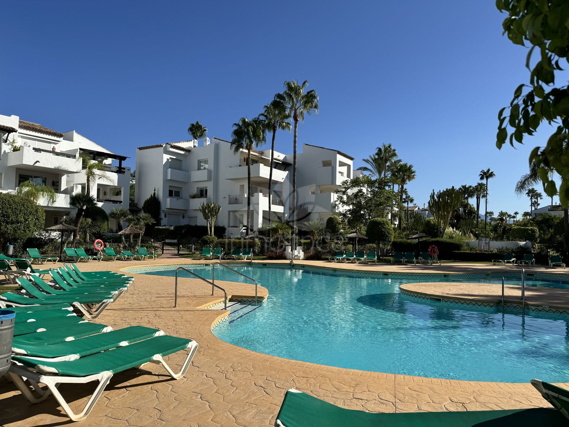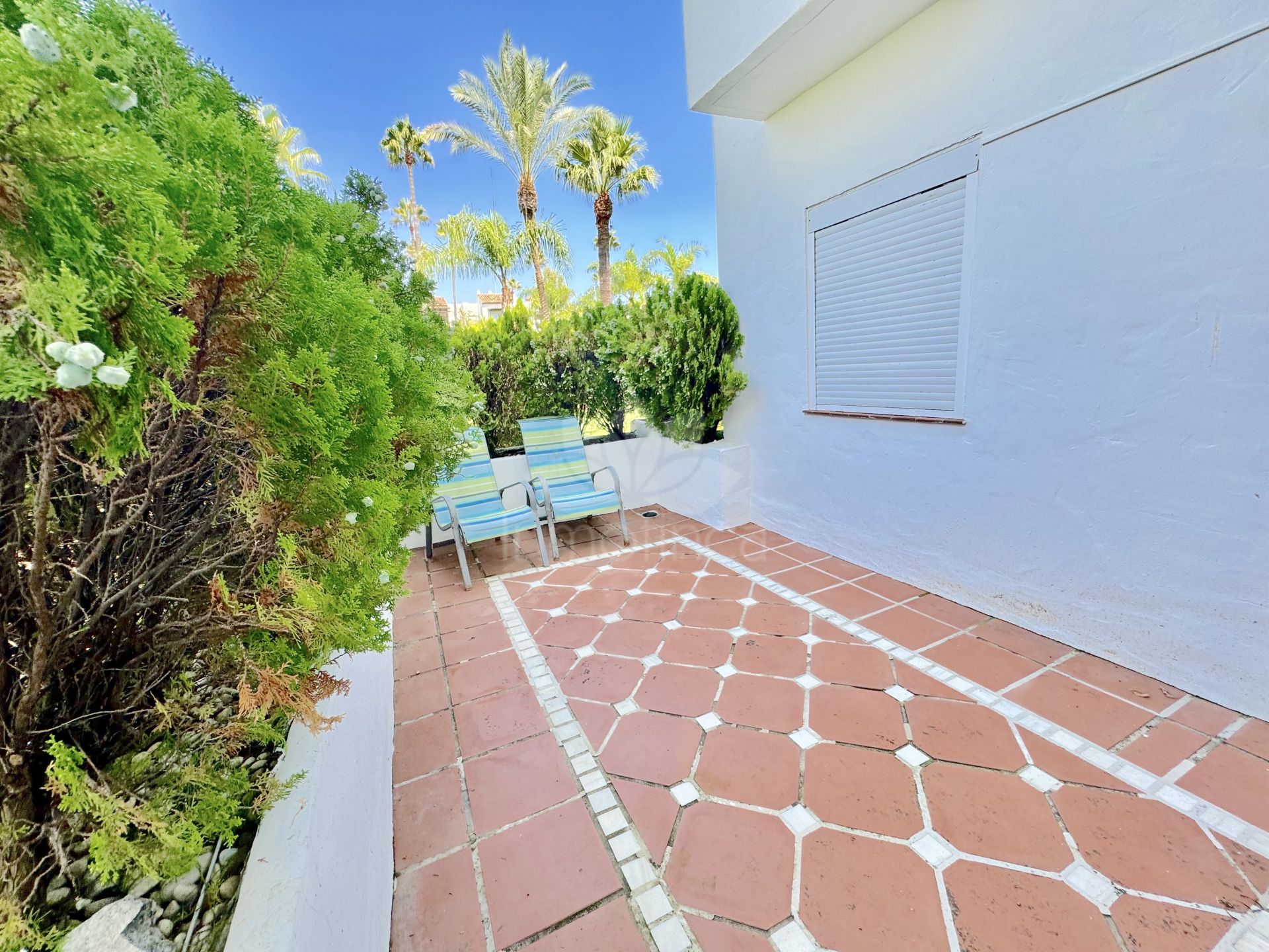 La planta baja en la que se encuentra el piso proporciona la ventaja de un acceso directo a los exuberantes jardines de la urbanización, donde la flora autóctona y las plantas ornamentales crean un ambiente de paz y serenidad. Además, se ha incorporado aire acondicionado con sistema frío/calor, asegurando una temperatura ideal en todo momento del año.