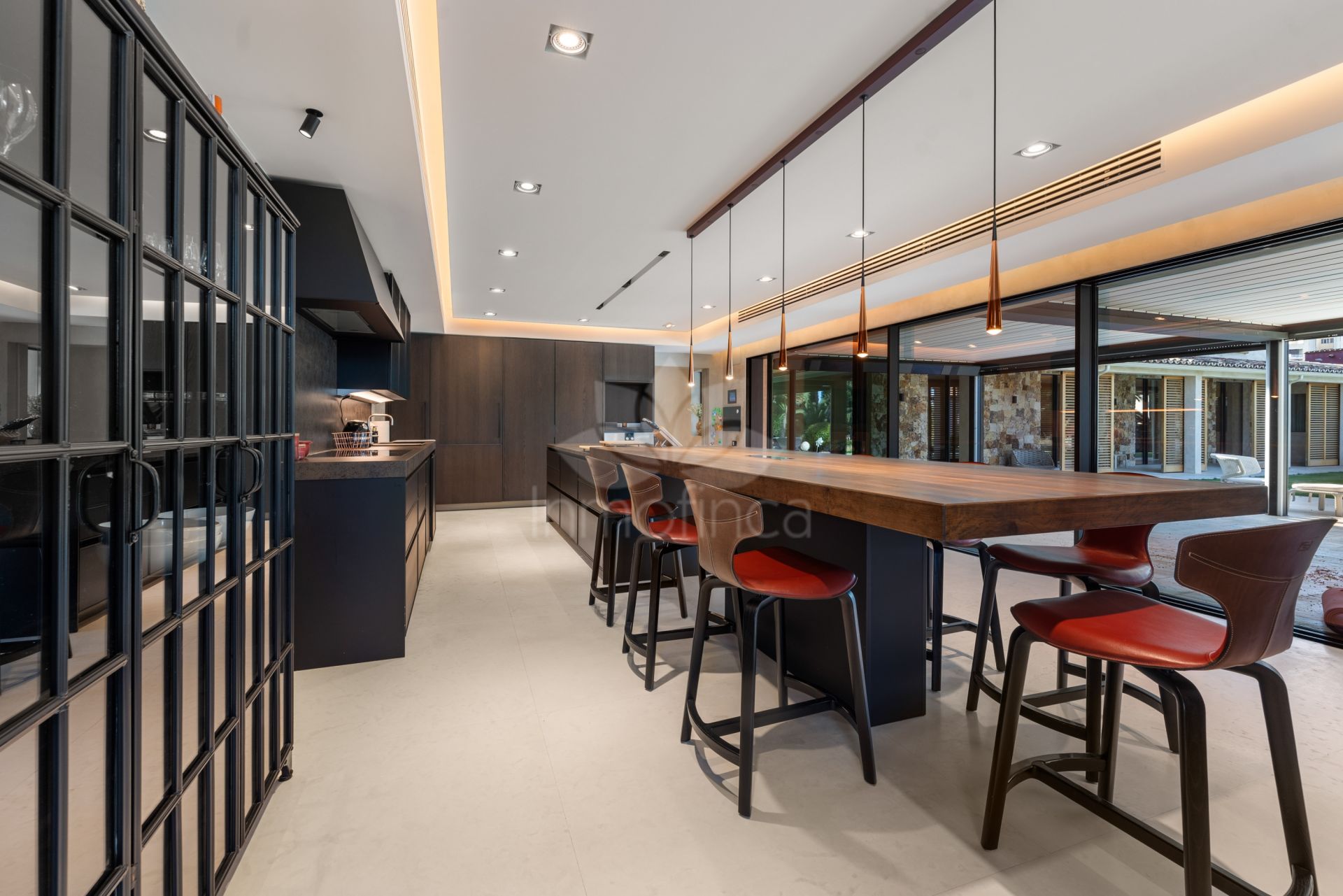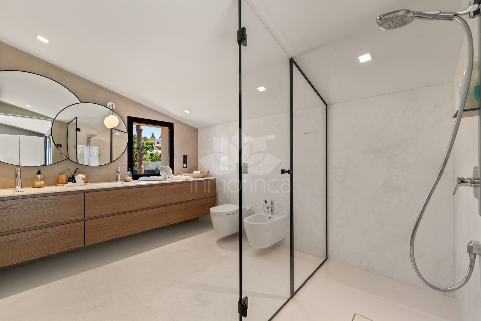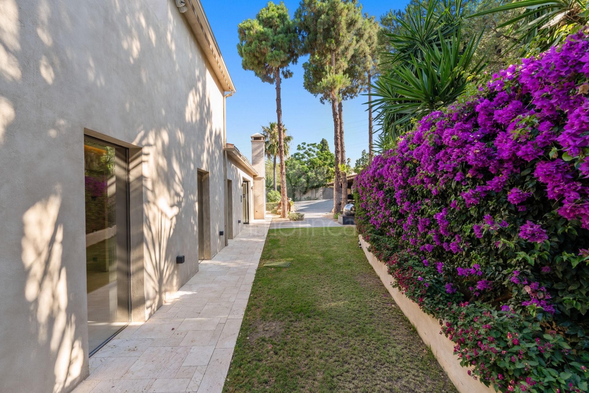 Villa renovada construida al más alto nivel sin escatimar en materiales y equipamiento. Cuenta con 6 dormitorios en suite muy confortables, incluyendo una casa de invitados independiente y un dormitorio de invitados situado en la planta superior, con entrada independiente. Hay un garaje para dos coches y una cochera para seis coches en una parcela de más de 2.000 m2. Las amplias y abiertas zonas de estar incluyen una cocina equipada con electrodomésticos Gaggenau de alta gama y neveras para vino. La pieza central de la cocina es una larga mesa con capacidad para diez personas y una gran chimenea. La villa también cuenta con una sala de juegos para niños, un despacho, una impresionante cocina profesional de estilo restaurante al aire libre, rodeada de acogedoras zonas chill-out junto a la piscina climatizada y el jacuzzi, así como un gimnasio bien equipado. Junto a la entrada hay una caseta de seguridad.