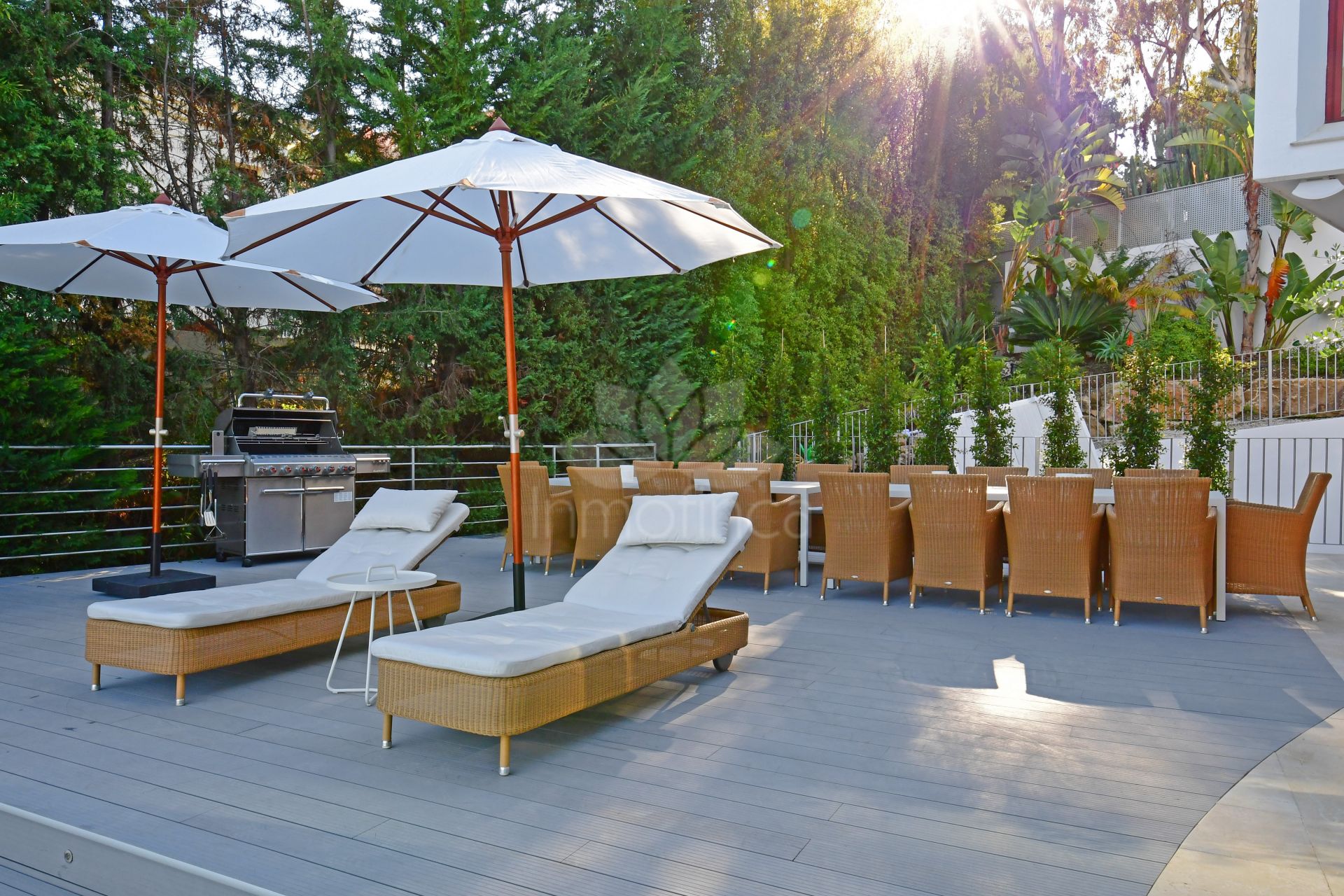 Ubicada en Nueva Andalucía, esta villa recientemente reformada está construida con al mejores calidades y diseñada por el famoso arquitecto Ángel Taborda, conocido a nivel mundial por su estilo vanguardista.