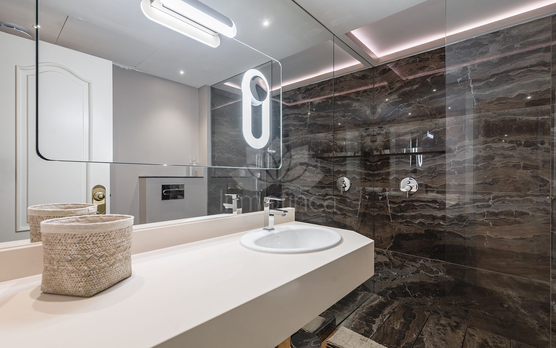 Apartamento en planta baja exquisitamente presentado, situado en una urbanización con seguridad 24 horas en Las Lomas del Marbella Club, en el corazón de la Milla de Oro. La propiedad ha sido completamente renovada y aprovecha al máximo toda su distribución de planta abierta que une la cocina, el salón y la gran terraza al aire libre, a la perfección. Los grandes ventanales del suelo al techo se abren desde el salón a un exuberante jardín tropical y a una terraza cubierta con cortinas de cristal ajustables que pueden abrirse en los meses de verano para proporcionar un increíble espacio de ocio dentro de un entorno muy privado. El apartamento aprovecha al máximo los metros cuadrados y ofrece dos amplios dormitorios, cada uno con su propio baño en suite. El dormitorio principal se abre y conecta con la gran terraza hacia la parte trasera de la vivienda. El complejo ofrece una piscina exterior con maravillosas vistas al mar, gimnasio y sauna para los residentes. La propiedad incluye 1 plaza de aparcamiento y un gran trastero. Situada en una zona muy cotizada, aproximadamente a mitad de camino entre Marbella ciudad y Puerto Banús.