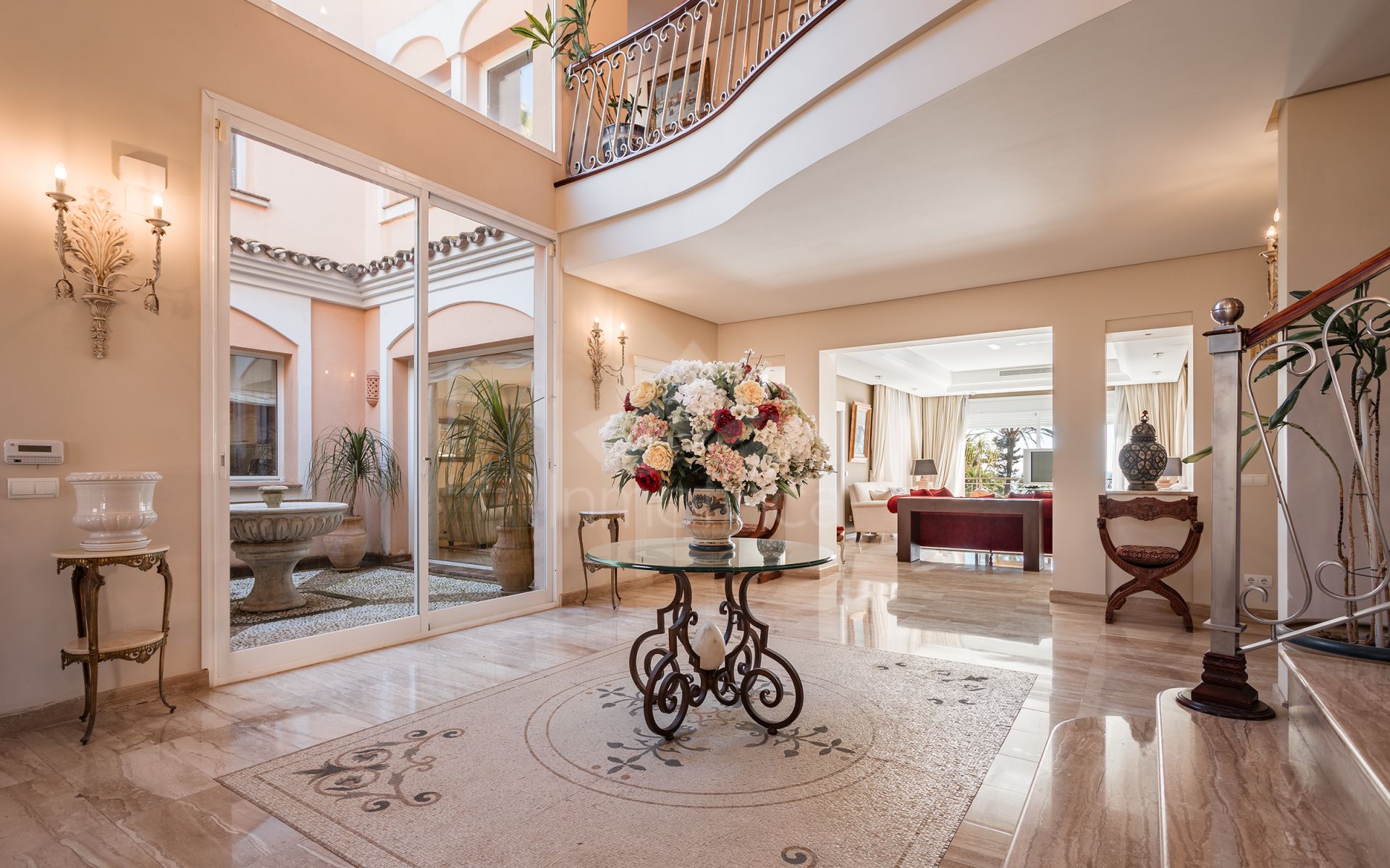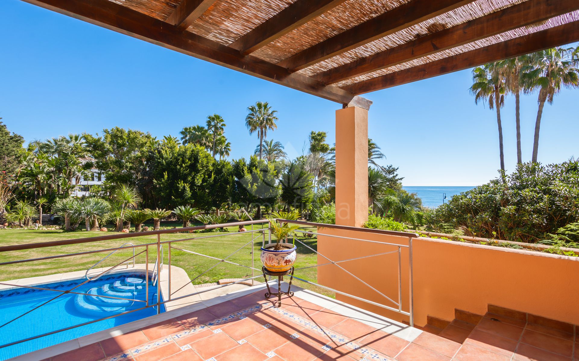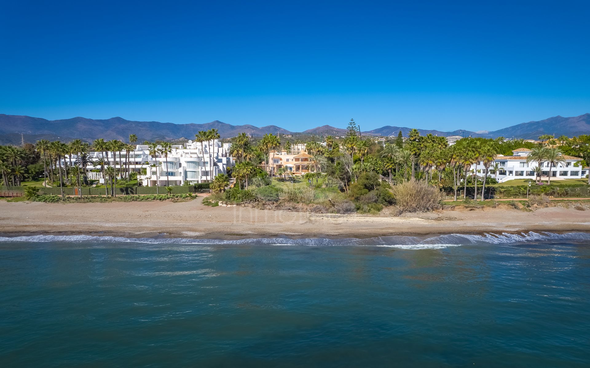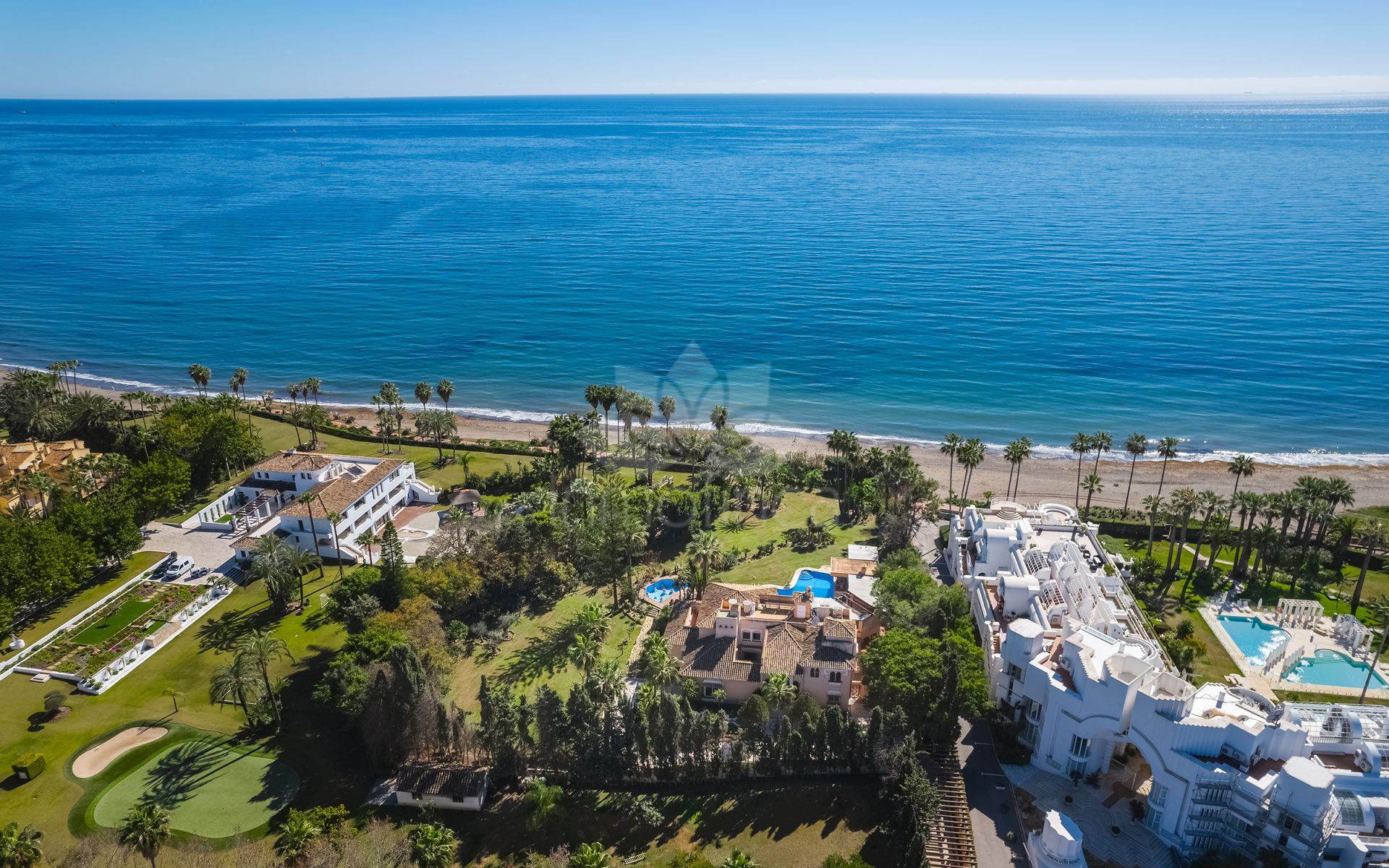 Enclavada a lo largo de la prístina costa de la Nueva Milla de Oro, esta impresionante villa en primera línea de playa personifica la vida de lujo en su máxima expresión. Con un total de 8 dormitorios, 10 cuartos de baño y un apartamento independiente para invitados, esta amplia propiedad ofrece un confort y una sofisticación incomparables.