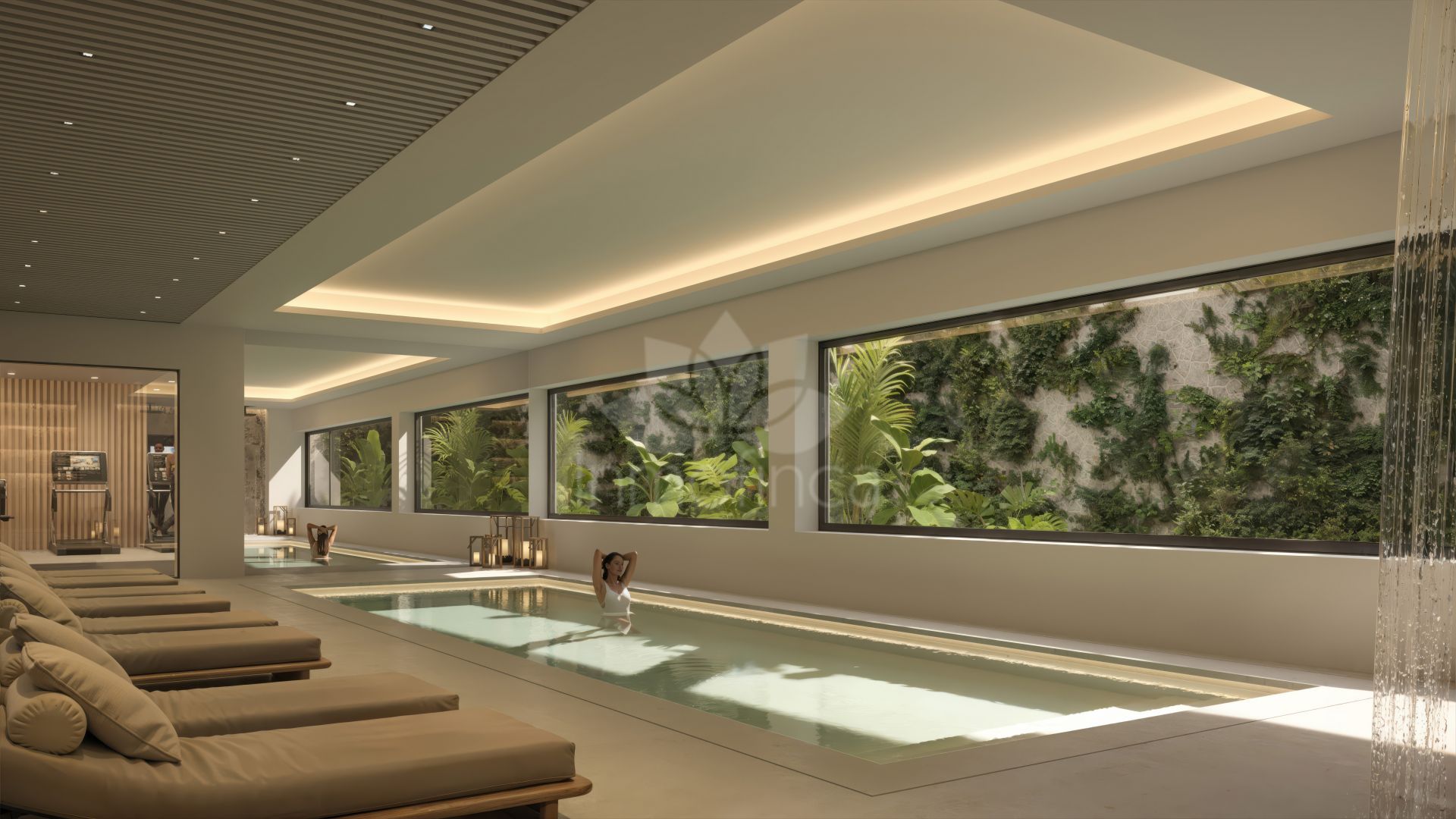 Zonas comunes de alto nivel pensadas para el bienestar, que incluyen piscina infinita en azotea, piscina a nivel de jardín, gimnasio, spa con sauna, coworking, club social, jardines mediterráneos, seguridad 24 h y garaje subterráneo con trasteros y cargadores para vehículos eléctricos.