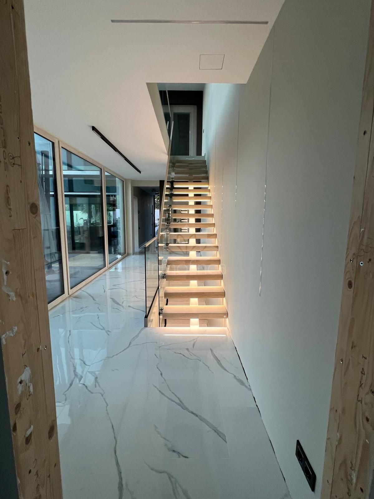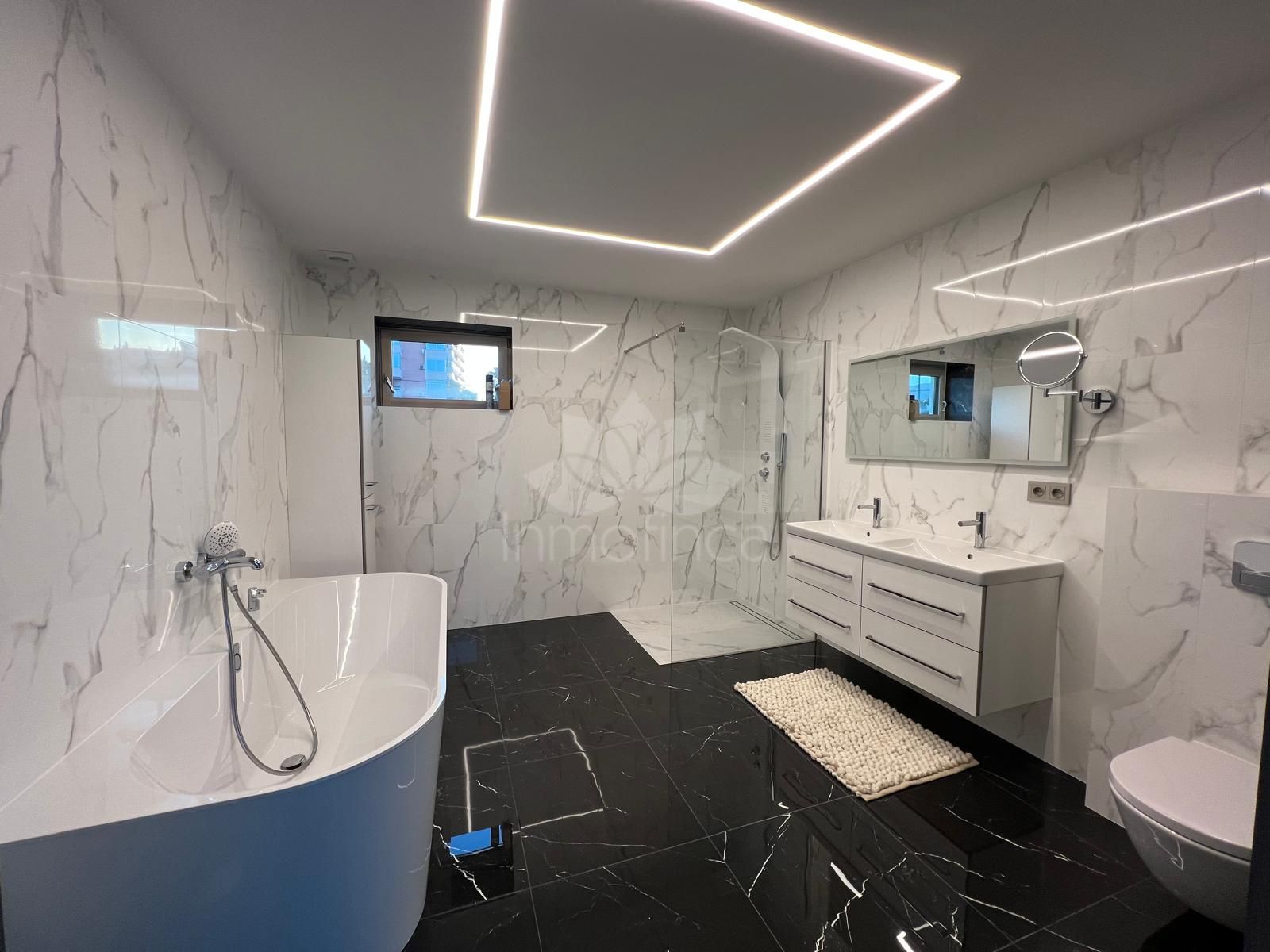 La villa está equipada con ventanas de doble acristalamiento, sanitarios Villeroy & Boch, placas solares, domótica y suelos radiantes en toda la vivienda.