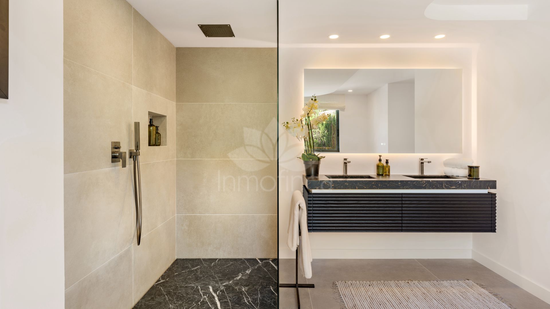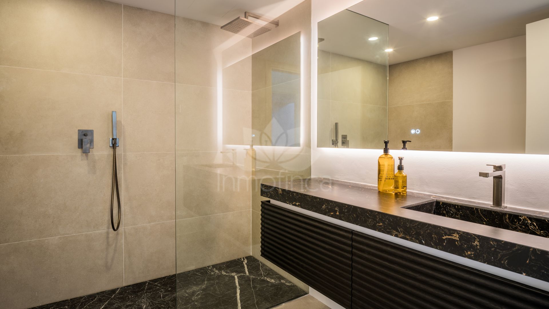 La seguridad y la comodidad son primordiales, con un sistema domótico, cámaras de vigilancia, alarma, doble acristalamiento y una entrada segura que ofrecen tranquilidad. La villa también cuenta con armarios empotrados, garaje cubierto y paquetes de mobiliario opcionales para adaptarse a los gustos individuales. En el exterior, el jardín privado y la piscina ofrecen espacios serenos para el ocio, complementados con magníficas vistas al mar, la montaña, el jardín y la piscina desde múltiples puntos.