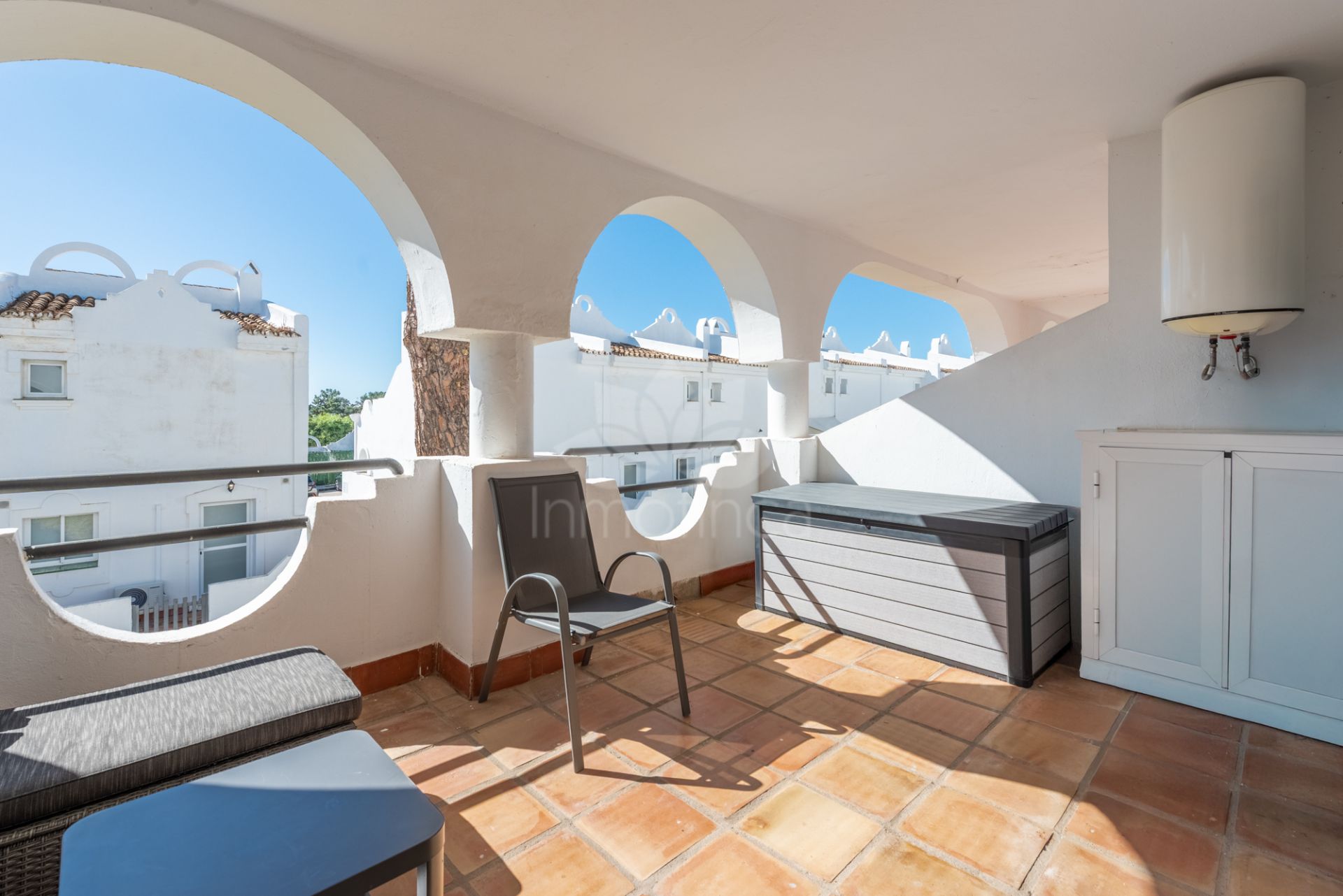 Bienvenido a esta acogedora y lista para entrar a vivir casa adosada con 2 dormitorios y 2 baños, situada en la popular y verde urbanización Vime Reserva de Marbella. Aquí disfrutarás de un oasis de tranquilidad, a solo 15 minutos a pie de la playa dorada y del pintoresco puerto de Cabopino, uno de los lugares más codiciados de Marbella.