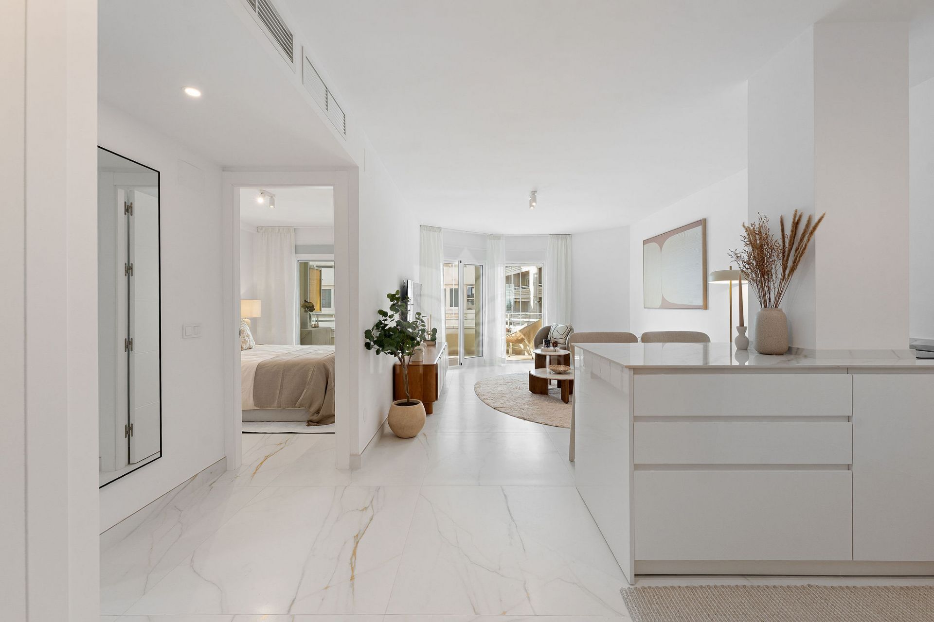 El apartamento ha sido totalmente reformado con un diseño contemporáneo, el interior cuenta con un diseño de planta abierta que maximiza la luz natural y la armonía. El luminoso salón fluye en una cocina elegante y totalmente equipada con electrodomésticos integrados y acabados modernos. El amplio dormitorio ofrece armarios empotrados y un ambiente sereno, mientras que el elegante baño muestra accesorios de alta calidad y un estilo limpio y moderno.