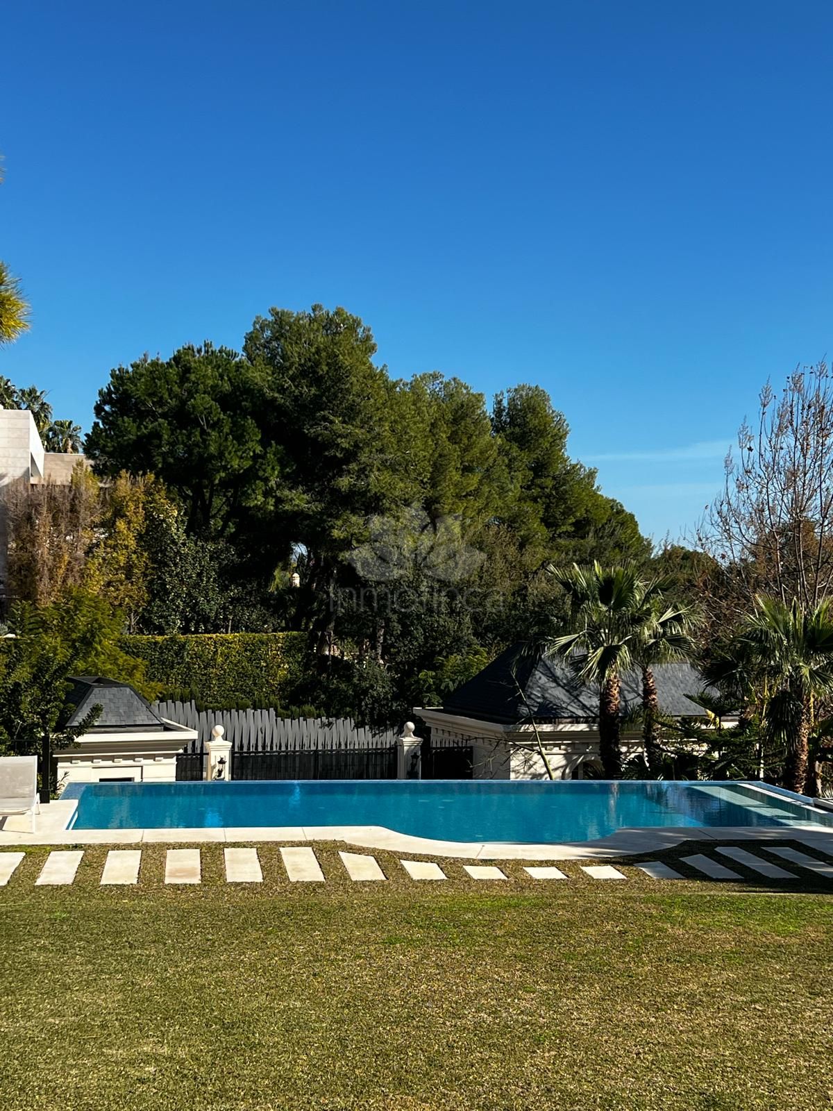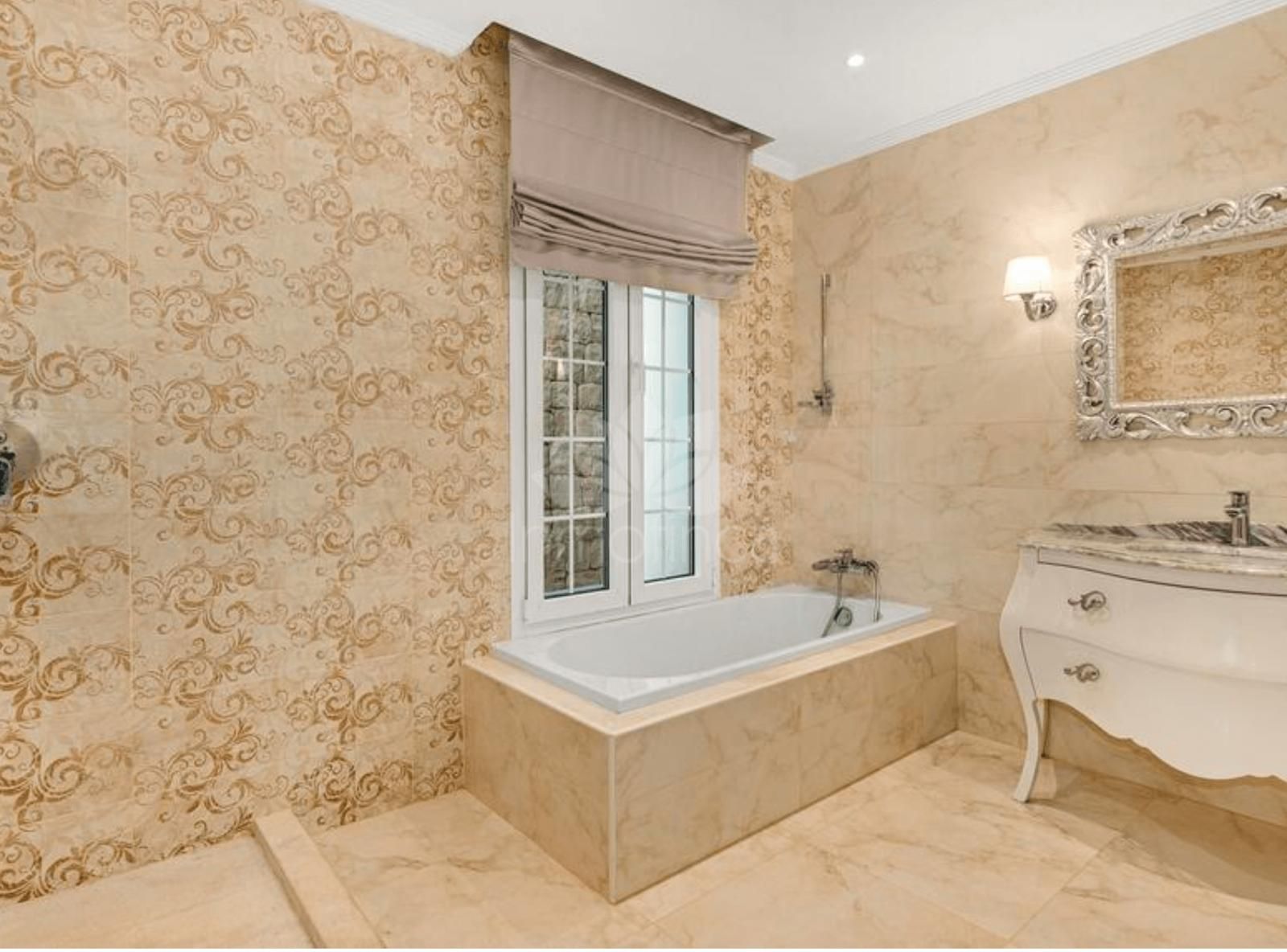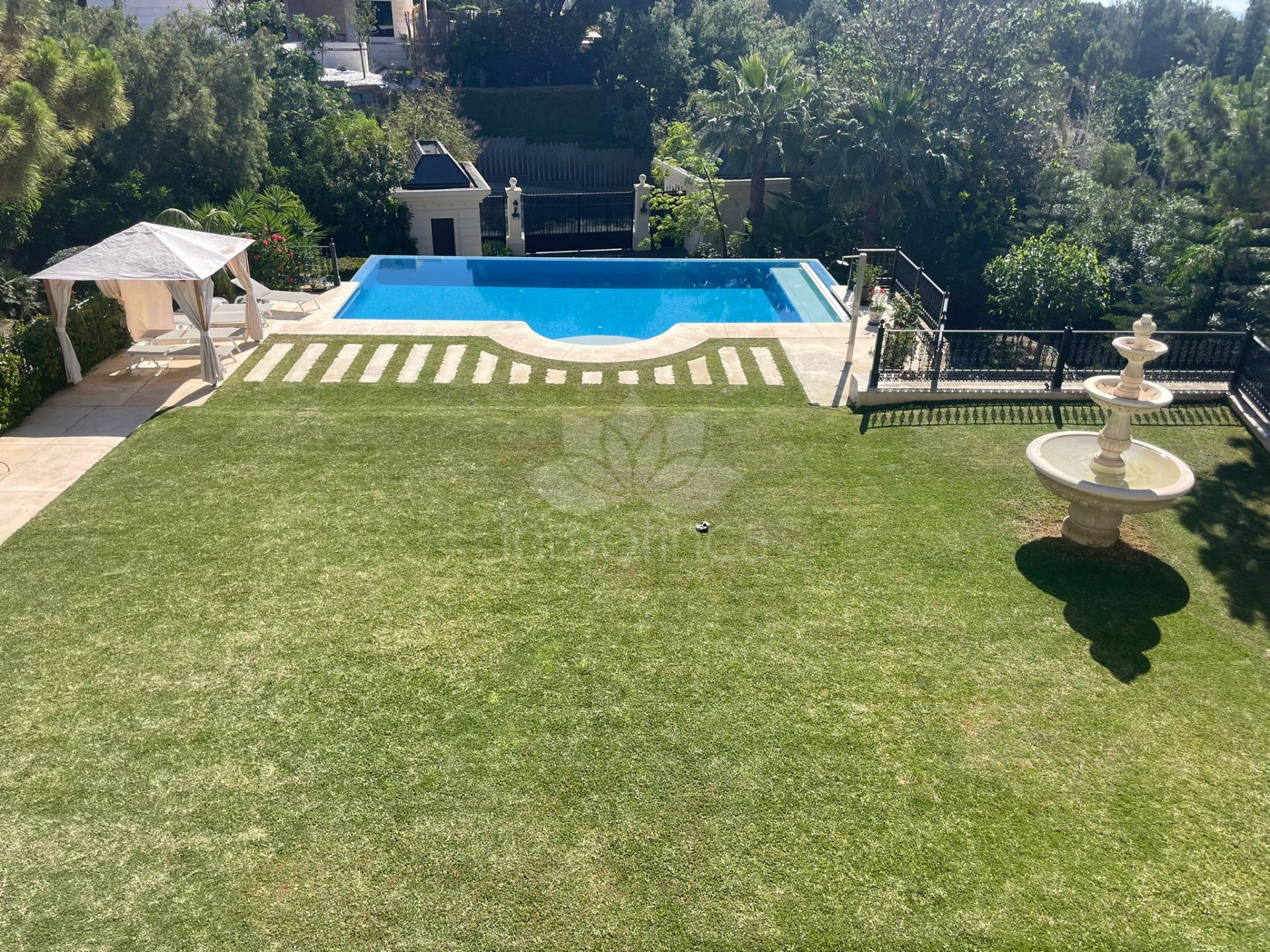 8 dormitorios y 8 baños, aseo de invitados independiente en la planta baja de la casa, cocina moderna equipada, sistema de domótica, suelos de mármol con calefacción en toda la casa, incluidos los baños, estudio-biblioteca, acogedora sala de cine. Para el descanso y la relajación spa con jacuzzi y hammam. piscina cubierta,