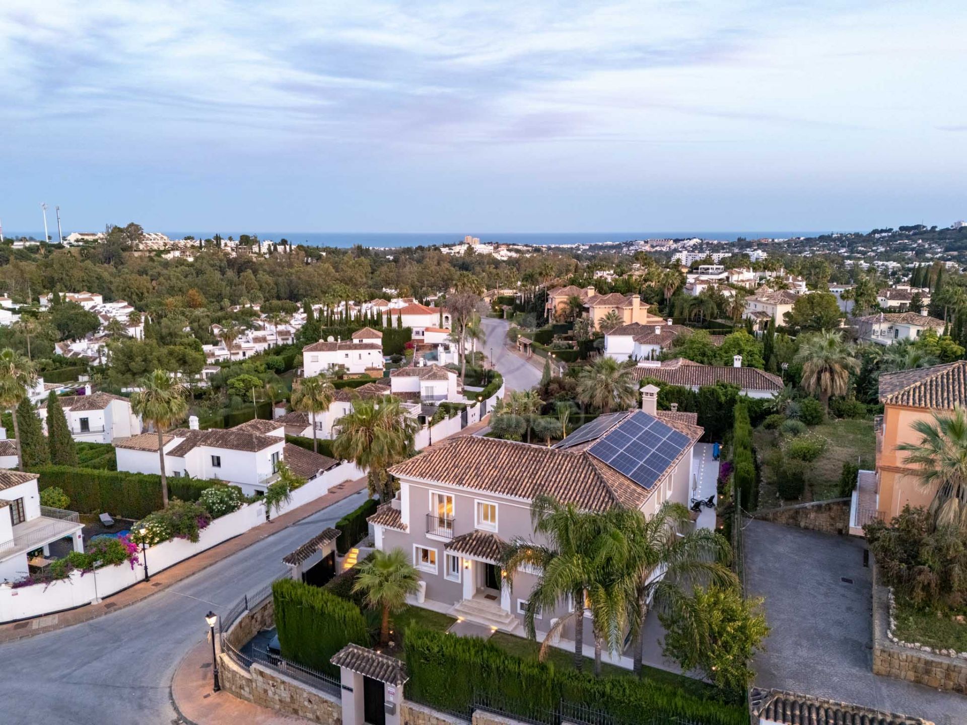 Entre los equipamientos destacan: aire acondicionado individual, persianas eléctricas, doble acristalamiento, sistema de alarma, cámaras de vigilancia, puerta blindada y entrada por videoportero. La propiedad incluye también paneles solares, sistema Dolby Stereo Surround, conexión a internet Wi-Fi, televisión por satélite y armarios empotrados. Su proximidad a servicios, transporte, colegios, golf, playas, puerto, tiendas y zonas infantiles convierten esta villa en una oportunidad única para quienes buscan lujo, seguridad y una ubicación inmejorable en Marbella.