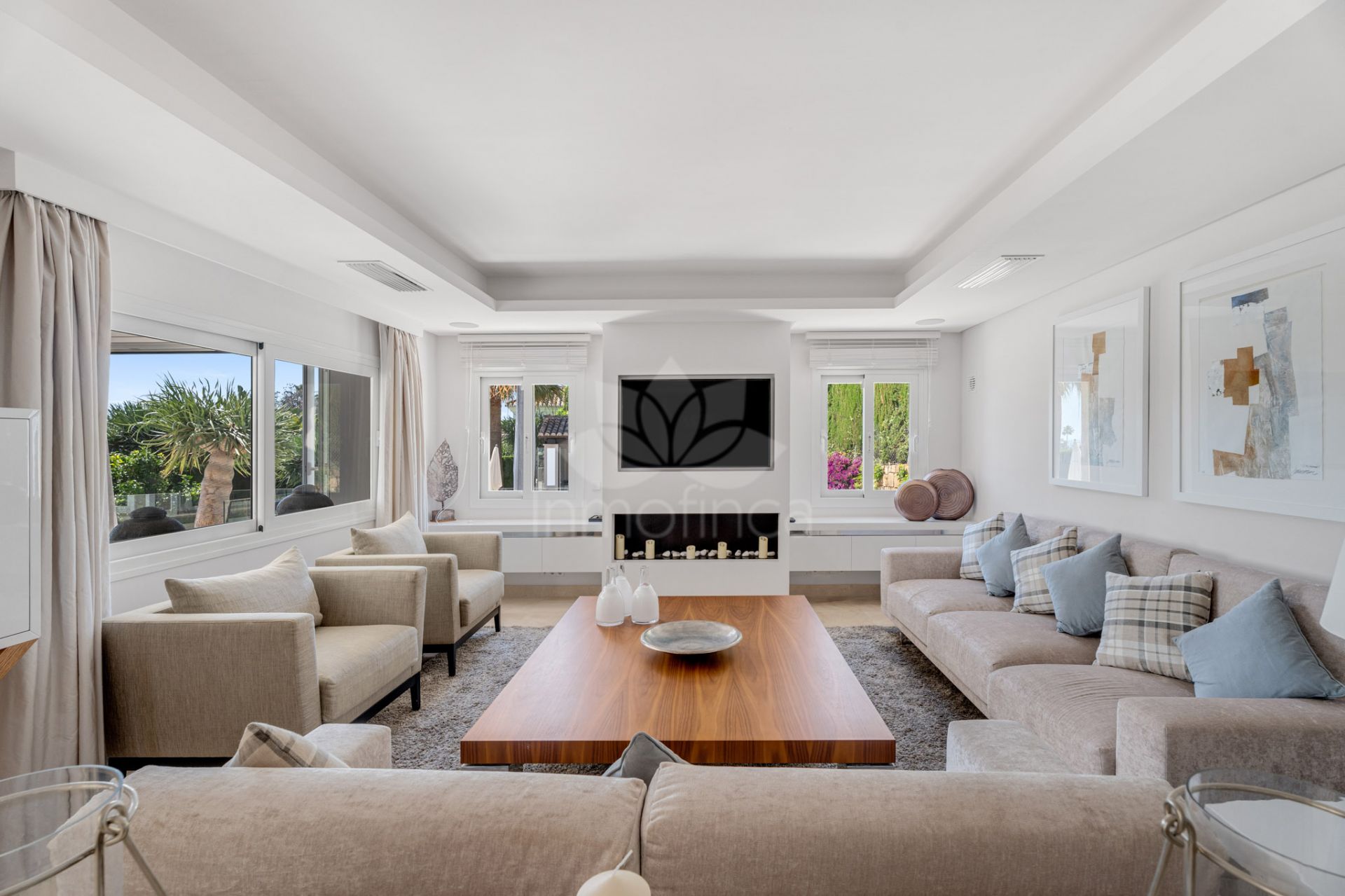 Las zonas exteriores son un verdadero oasis, con una piscina privada, jardines cuidados con sistema de riego automático y varias terrazas cubiertas y descubiertas que permiten disfrutar del clima mediterráneo. El área de barbacoa, la sala de juegos, el cine en casa y el sótano ofrecen espacios versátiles para el entretenimiento. Además, la vivienda dispone de garaje privado, trastero y está adaptada para personas con movilidad reducida.