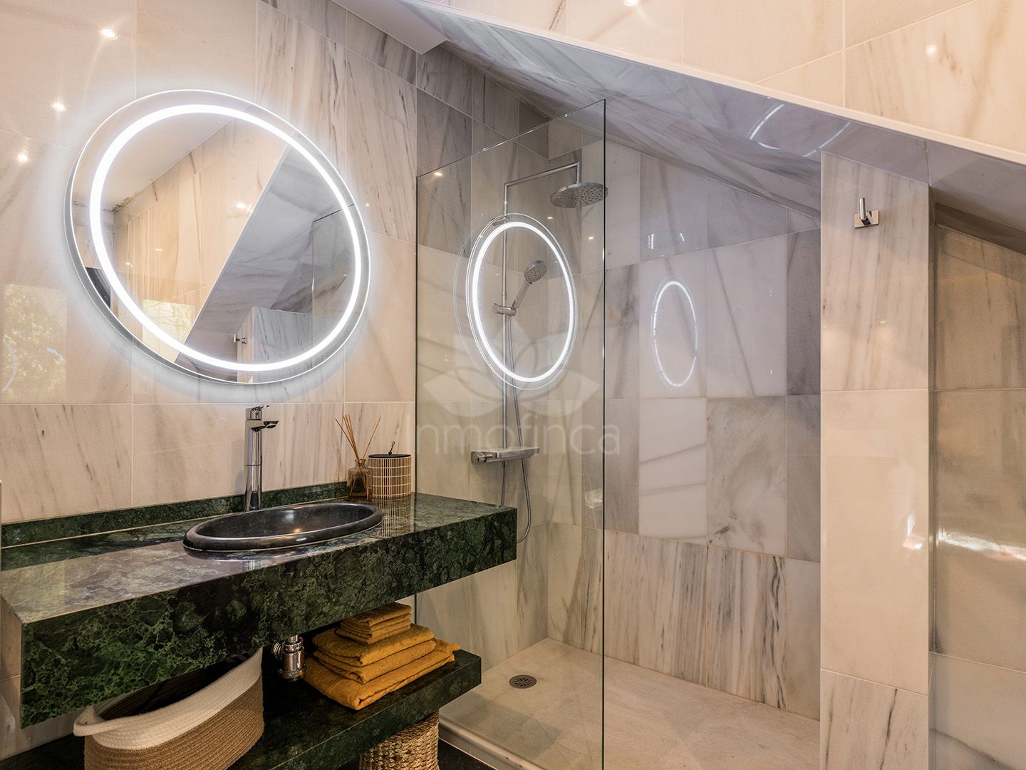La planta superior de la villa cuenta con el dormitorio principal, con baño en suite (con bañera), ducha y un gran vestidor, terraza privada con impresionantes vistas al mar y la naturaleza. En la planta baja, encontrará dos dormitorios de invitados, cada uno con su propio cuarto de baño, así como un dormitorio doble adicional con cuarto de baño independiente. Todos los dormitorios están equipados con armarios empotrados y aire acondicionado para refrigeración y calefacción. Para mayor comodidad, toda la casa dispone de calefacción por suelo radiante con controles separados en cada zona, lo que le permite ajustar la temperatura a su gusto.