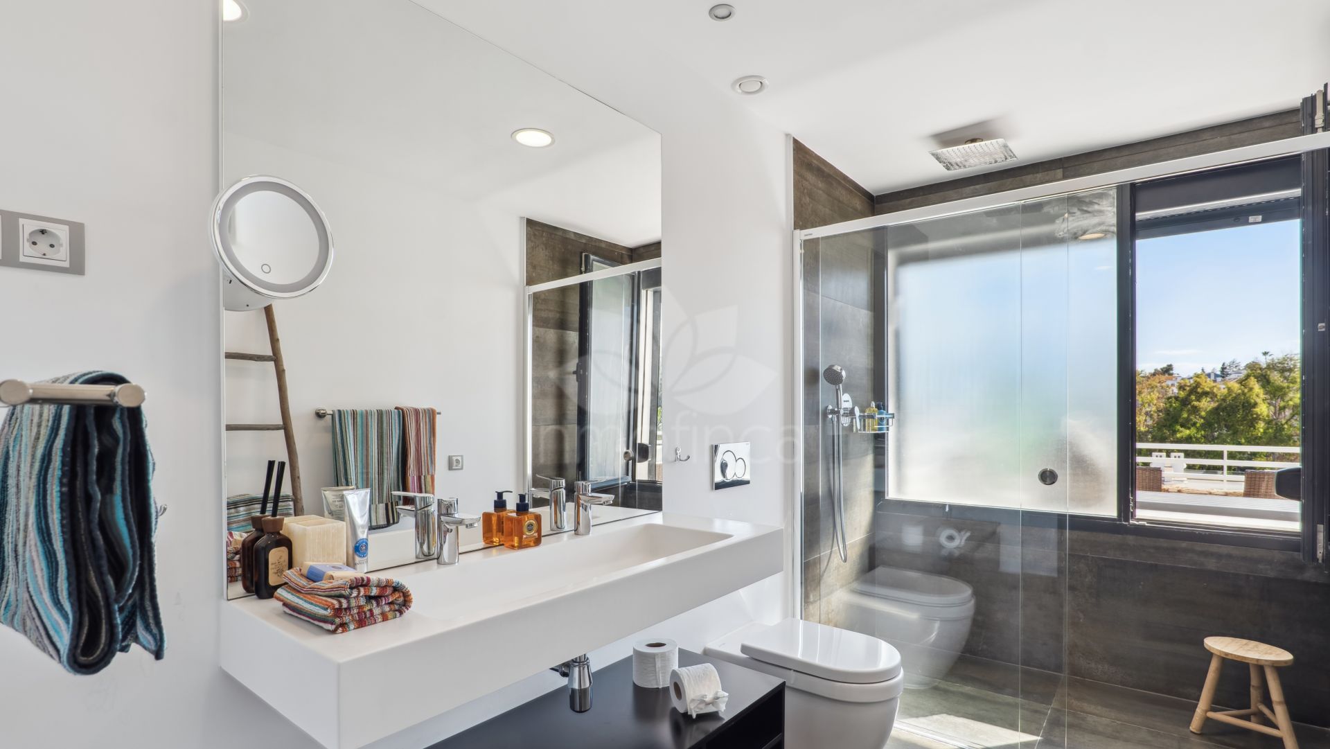 Arriba encontrará tres amplios dormitorios, incluyendo una suite principal con su propia terraza y vistas impresionantes de la montaña La Concha y el mar Mediterráneo. En la tercera planta se espera una espectacular terraza en la azotea, completa con espacio para un jacuzzi, tumbonas y salas de estar para remojar el sol todo el día.