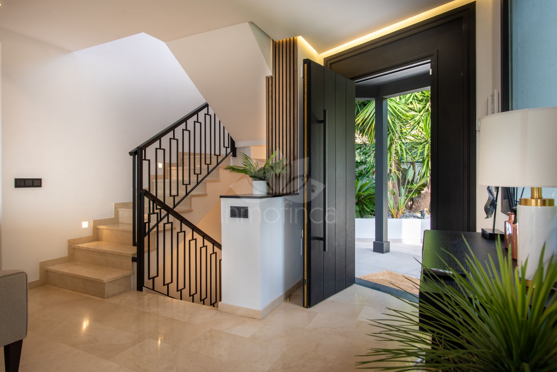 Ubicado en la prestigiosa zona de La Quinta de Benahavis, esta impresionante villa de 303 metros cuadrados (386 m2 incluyendo terrazas) se encuentra en una extensa parcela de 765 m2, que ofrece una mezcla incomparable de lujo y belleza natural. Con su codiciada orientación orientada al sur, la propiedad se baña en luz natural durante todo el día, ofreciendo impresionantes vistas panorámicas del mar, campo de golf y montañas circundantes.