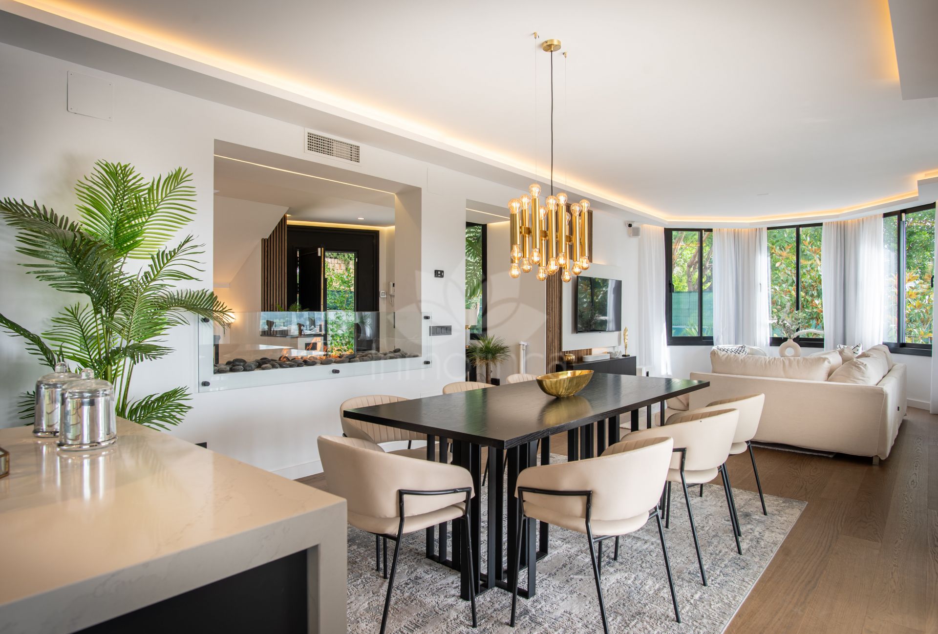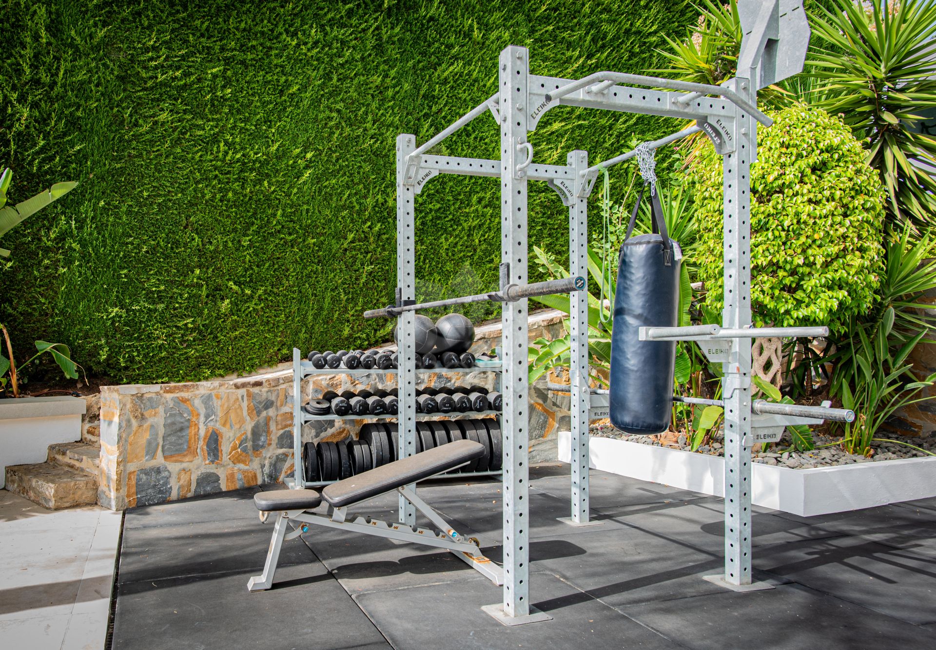 La casa pensada cuenta con cinco amplios dormitorios y cinco baños, garantizando comodidad y privacidad tanto para la familia como para los huéspedes. La experiencia de estar al aire libre es realmente excepcional, con un jardín privado que muestra una piscina espumosa, cocina totalmente equipada al aire libre, y una zona de gimnasio dedicada – perfecta para abrazar el estilo de vida mediterráneo activo. La propiedad incluye un generoso garaje de dos coches, que proporciona aparcamiento seguro y espacio de almacenamiento adicional.