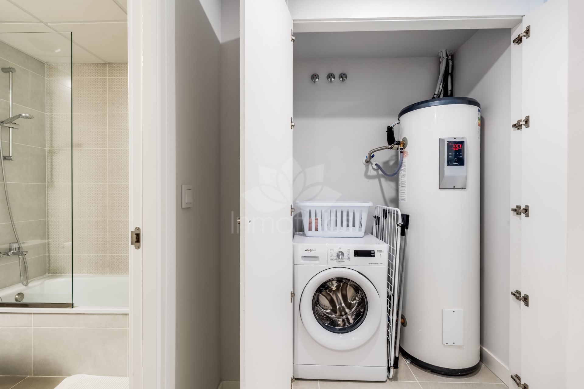 Situado en una comunidad cerrada, los residentes tienen acceso a excelentes zonas comunes, incluyendo una piscina, gimnasio y un espacio de co-working. Además, la propiedad incluye una plaza de garaje subterránea y un trastero privado.