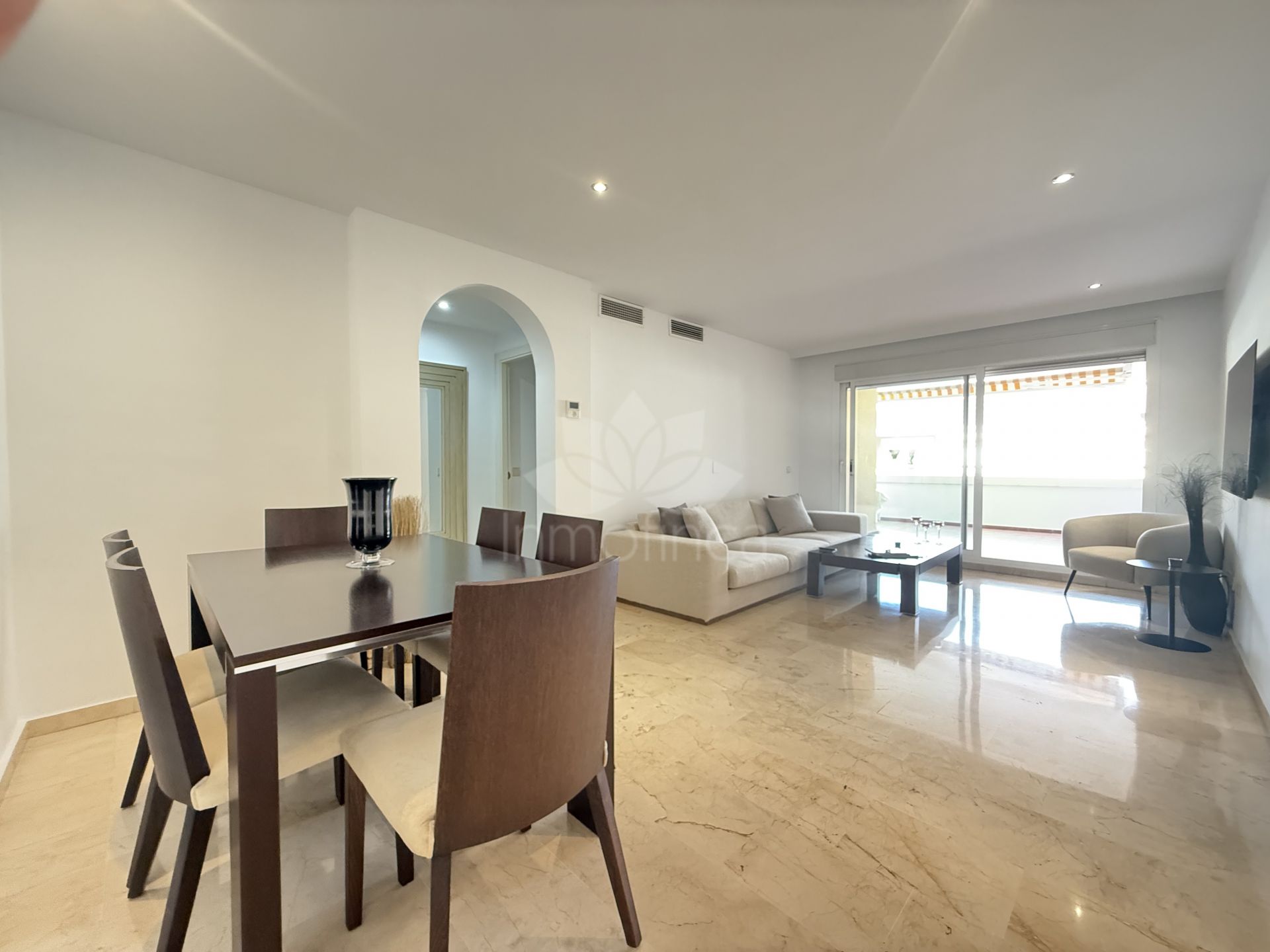 Presentamos un excepcional apartamento en San Pedro de Alcántara, ideal tanto para familias como para inversores. Este inmueble cuenta con dos amplios dormitorios y dos baños, uno de ellos en suite, ofreciendo comodidad y privacidad. La cocina, moderna y de diseño atractivo, está equipada con electrodomésticos de alta gama Miele, garantizando calidad y funcionalidad.