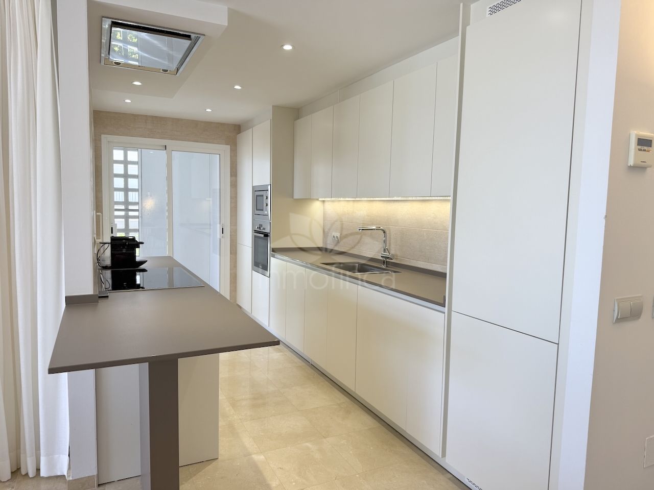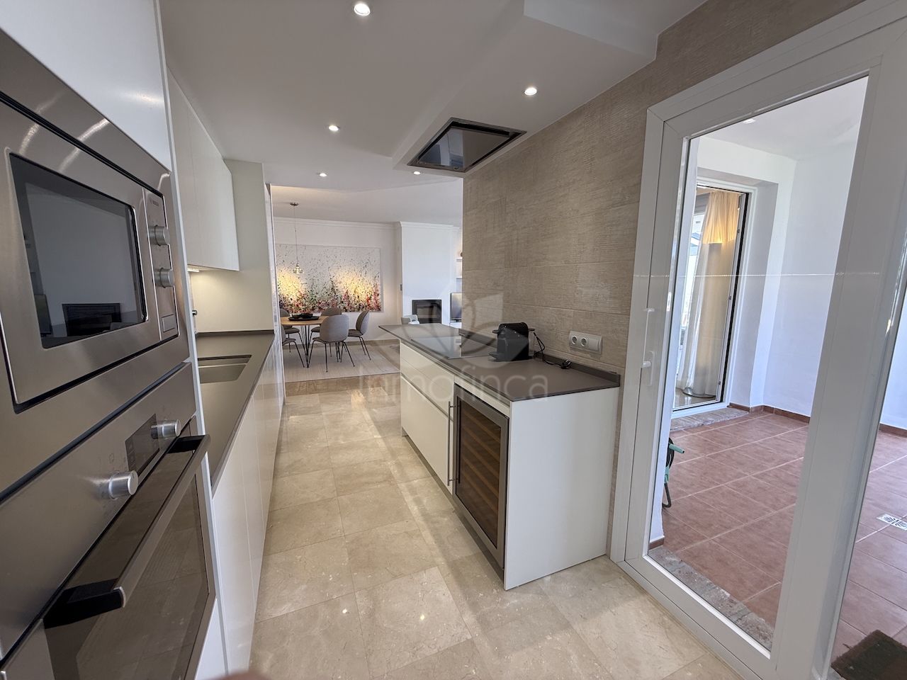 El apartamento se presenta en excelente estado y cuenta con una moderna cocina abierta, completamente equipada con electrodomésticos de alta calidad, conectada de forma fluida con las zonas de salón y comedor. Los suelos de mármol en todas las estancias añaden un toque de sofisticación, mientras que el aire acondicionado garantiza comodidad durante todo el año. La propiedad consta de tres habitaciones bien proporcionadas, incluyendo una suite principal con baño en suite, y un segundo baño familiar. Los armarios empotrados ofrecen amplio espacio de almacenamiento, y la inclusión de una puerta blindada mejora la seguridad.