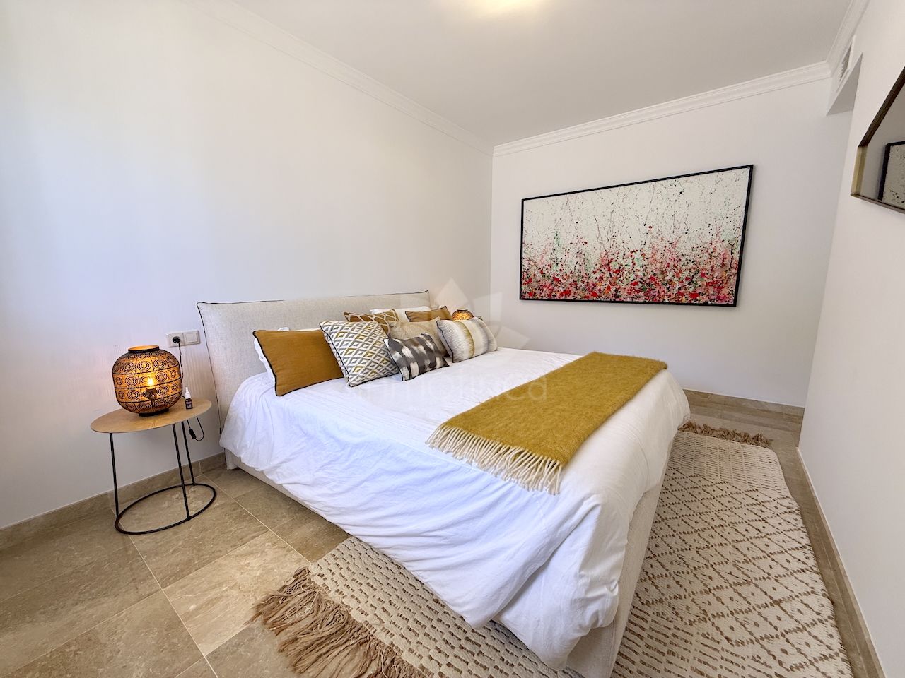 Este elegante apartamento de tres dormitorios se encuentra en la codiciada zona de La Mairena, en Marbella Este, y ofrece una armoniosa combinación de confort, estilo y comodidad. La vivienda cuenta con una generosa superficie construida de 148 m² complementada por una amplia terraza de 53 m², que proporciona espacio de sobra para vivir tanto en interior como en exterior. Ubicado dentro de una comunidad cerrada y protegida, los residentes se benefician de un entorno apacible con jardines comunitarios maduros y una gran piscina compartida, perfecta para la relajación y el ocio.