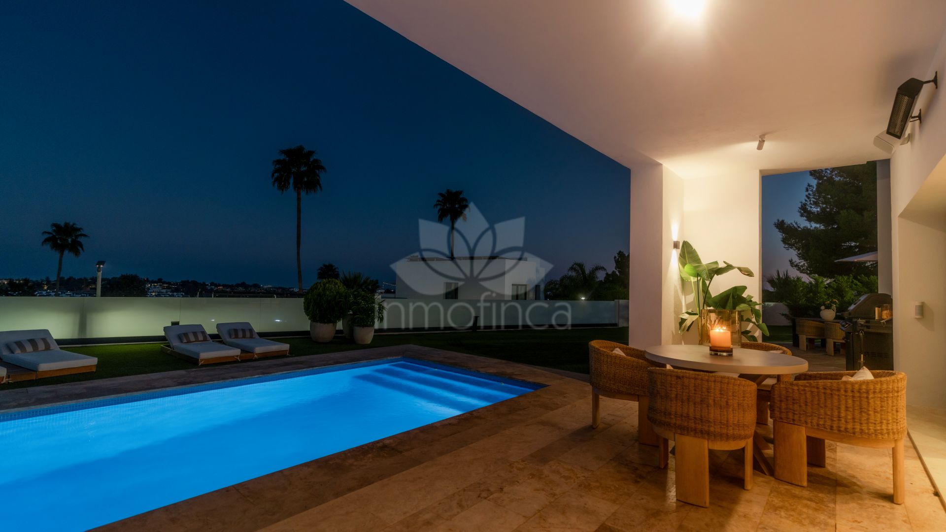 Las zonas exteriores están diseñadas para el disfrute durante todo el año, incluyendo una piscina privada, jardines paisajísticos con amplias zonas de césped y terrazas tanto cubiertas como descubiertas.