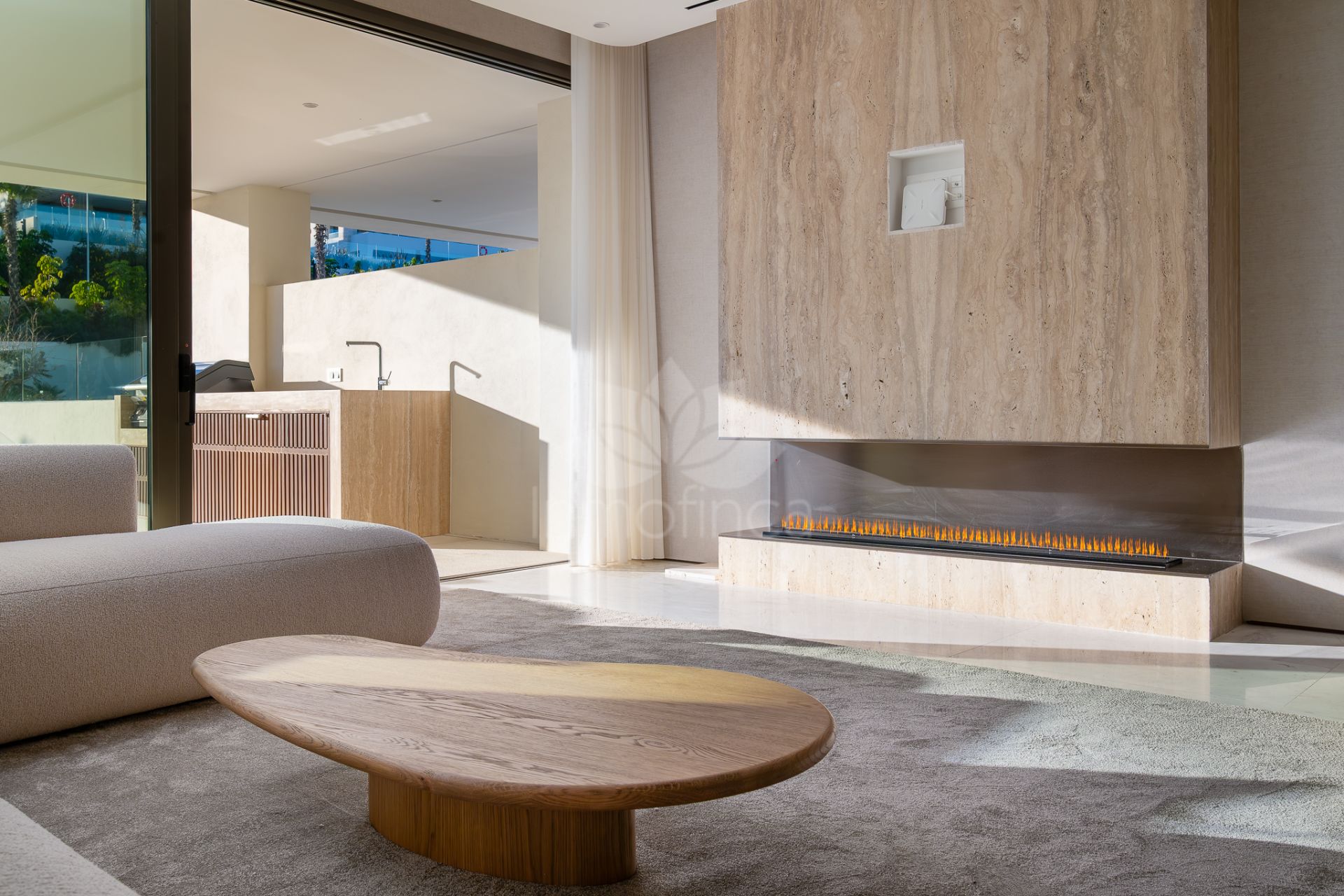 Entre en una luminosa y espaciosa sala de estar de planta abierta que se conecta perfectamente a una terraza privada, perfecta para comer al aire libre y disfrutar del clima mediterráneo. La moderna cocina está equipada con electrodomésticos de alta gama y elegantes acabados, lo que la convierte en el paraíso de los chefs.