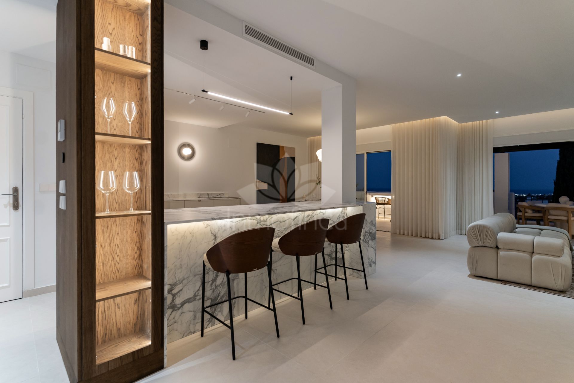 Totalmente renovado y de estilo impecable, este ático dúplex en esquina de 3 dormitorios y 3 baños combina un elegante diseño escandinavo con amplias vistas al Mediterráneo. Distribuido en dos plantas, esta luminosa y diáfana vivienda está pensada para disfrutar de un relajado estilo de vida costero.