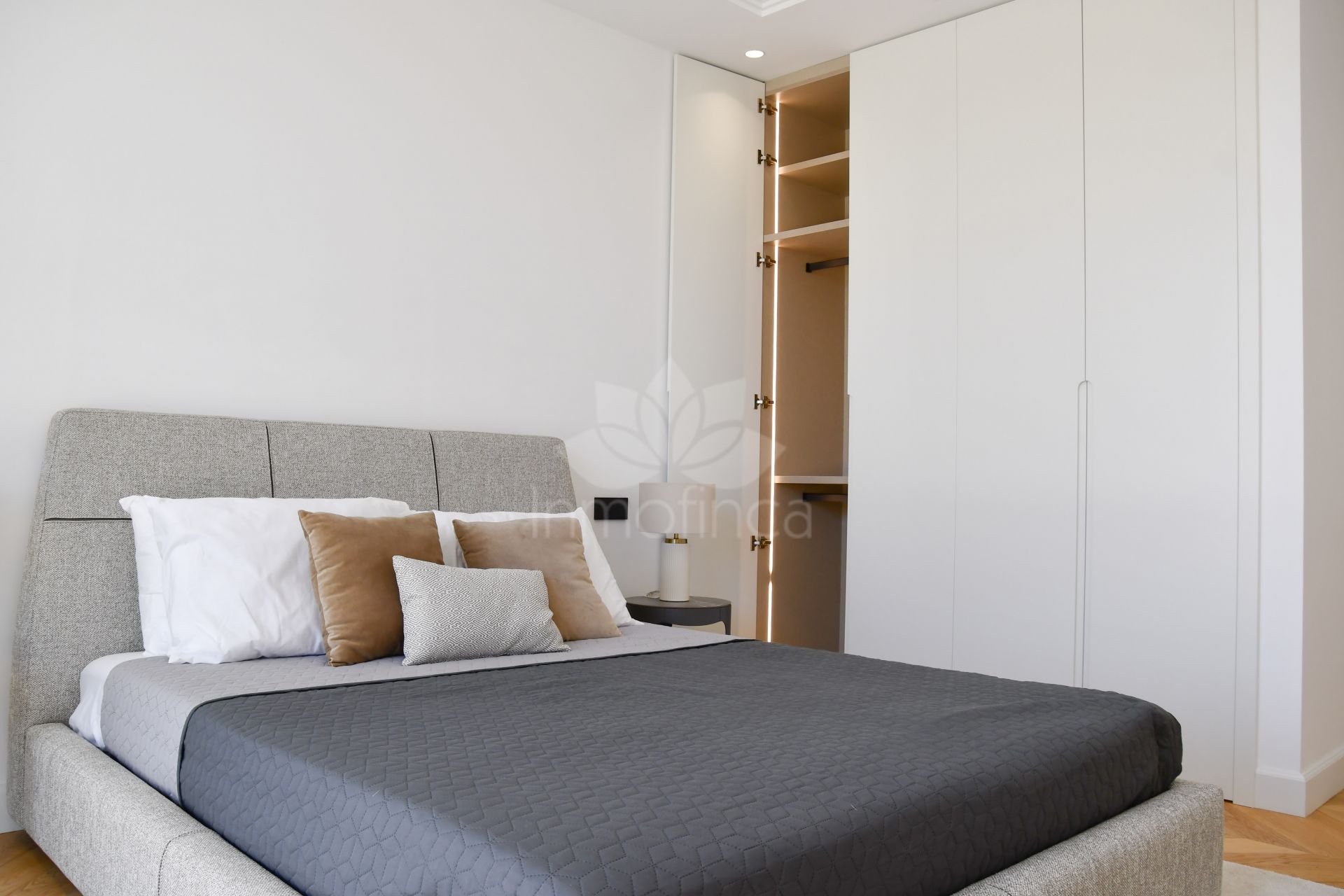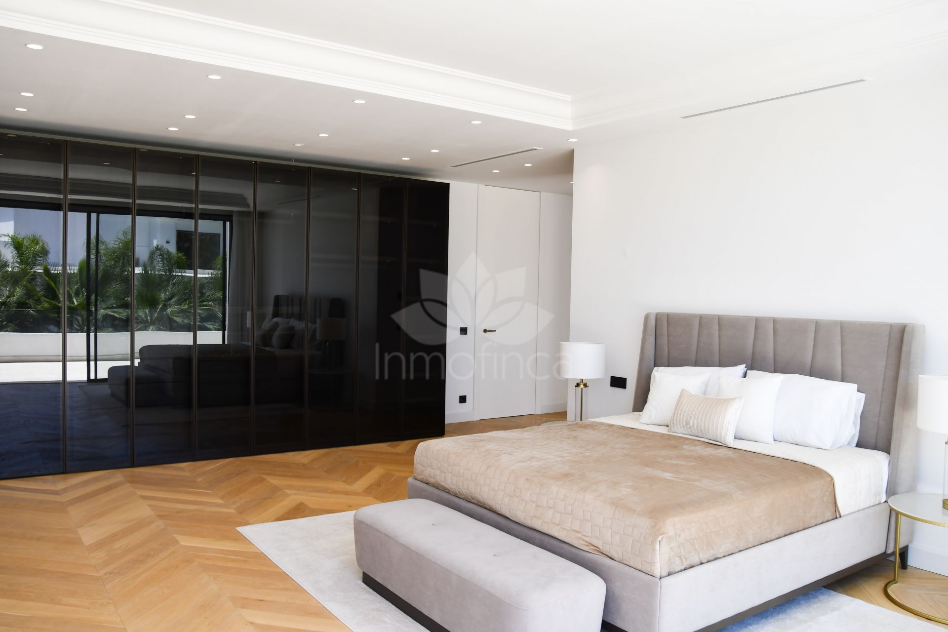 La planta superior consta de 3 dormitorios con baños en suite y vestidores. El dormitorio principal, con acceso a una gran terraza, ofrece una espectacular vista a la piscina y al mar.